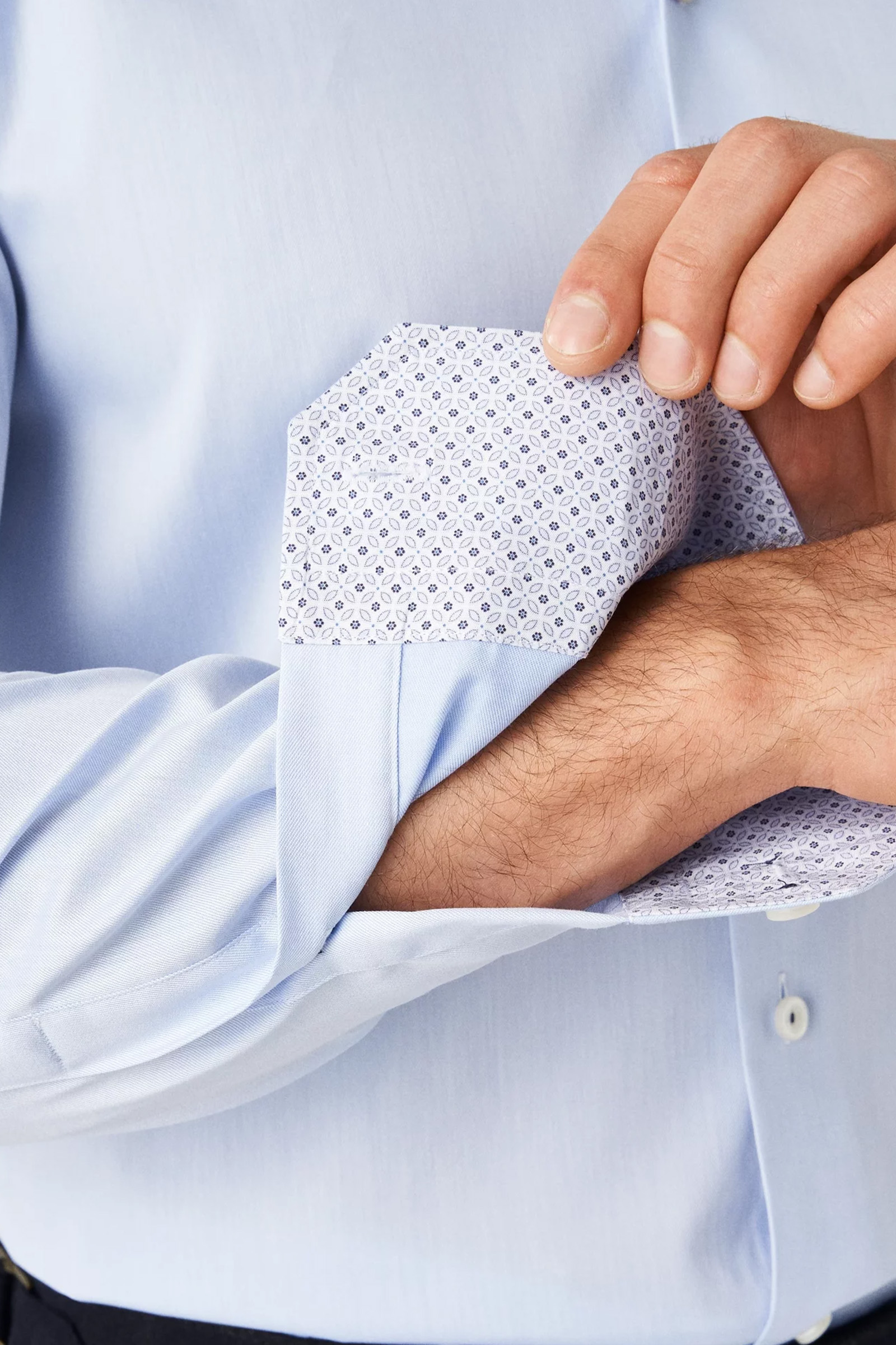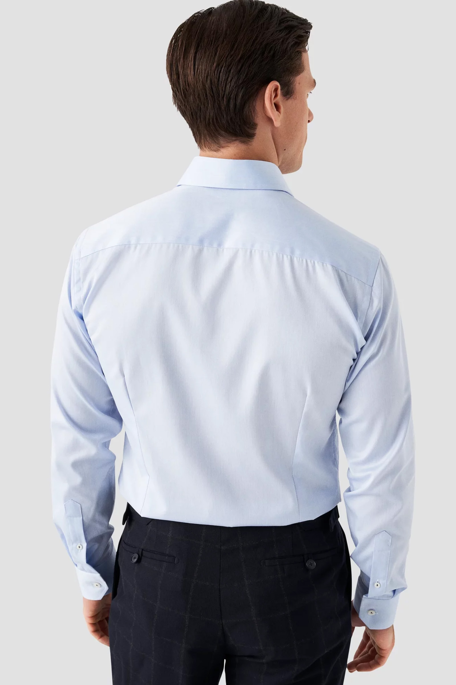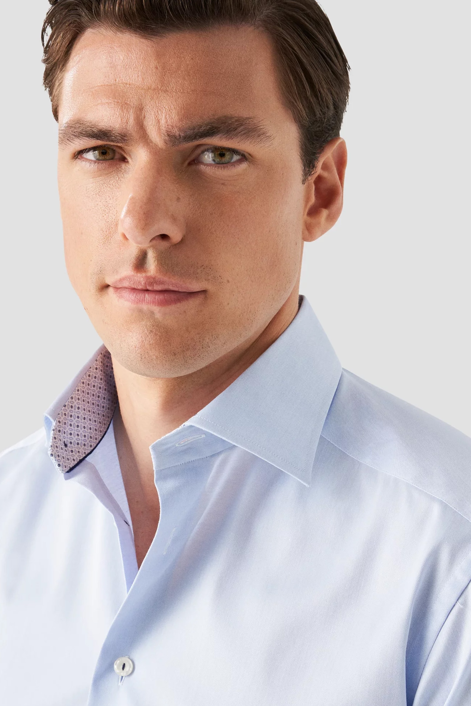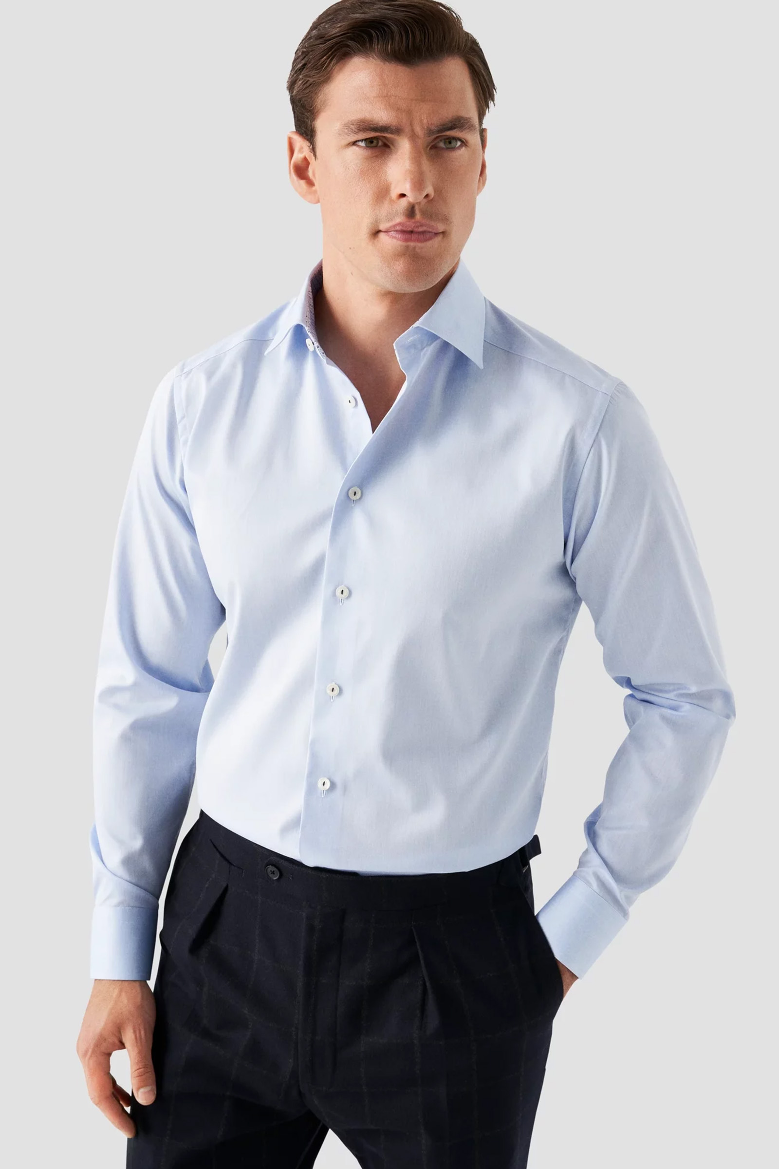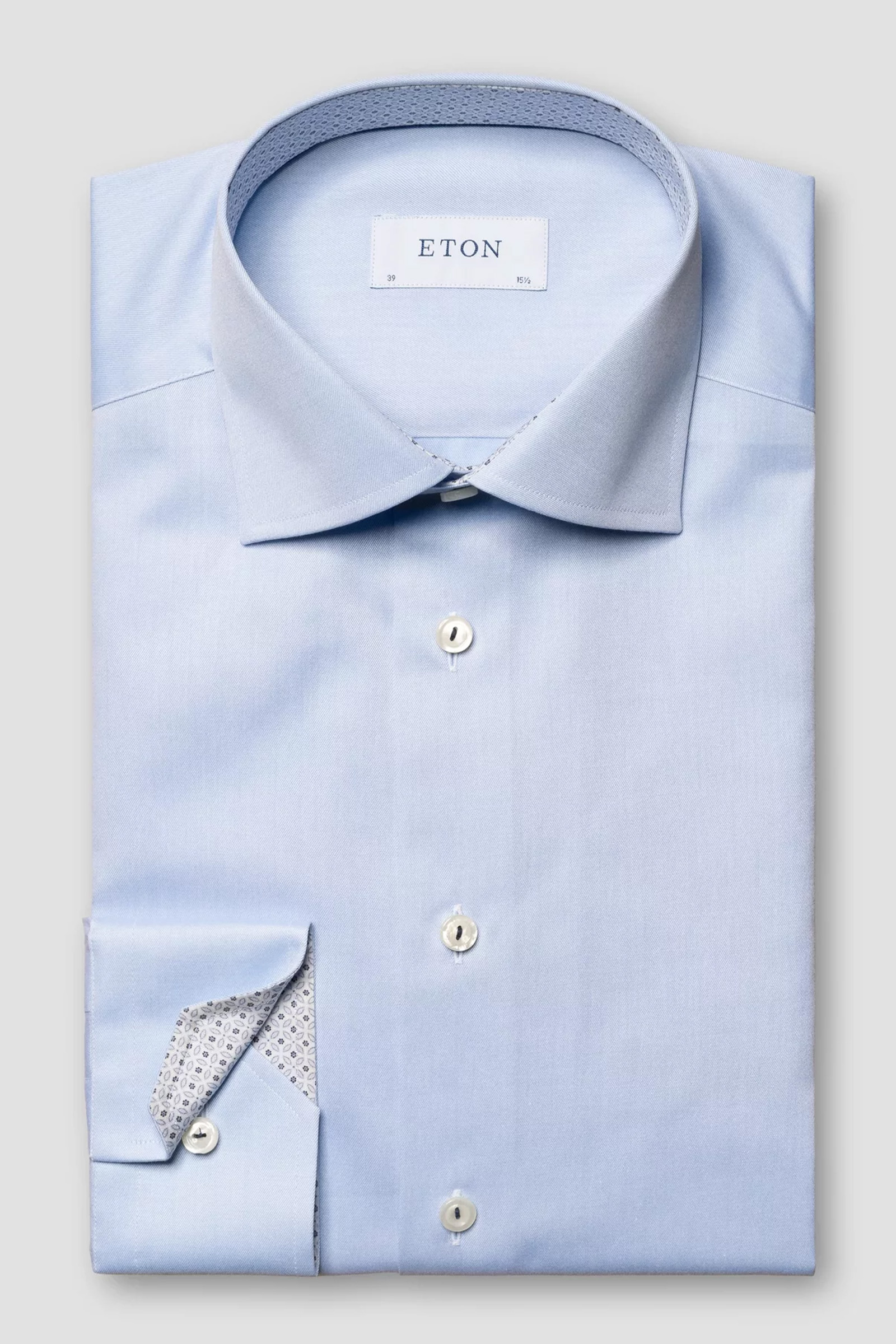 En elegant skjorte fra kvalitetsmerket Eton i lys blå farge med lyse knapper i front. Skjorten har et mikromønster på innsiden av kragen og innsiden av mansjettene. Laget av 100% bomull som gjør skjorten både slitesterk, enkel å ta vare på og behagelig på. Style: 10001026921