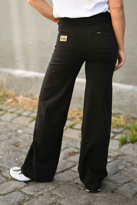 Tidløs denimjeans fra jeanseksperten Lois! Palazzo kommer i en vid passform med full lengde som gjør den like fin til støvletter som til sneakers. Palazzo har et klassisk jeansdesign med fem lommer, kombinert glidelås- og knappelukking og buksehemper. Bruk med sesongens strikk til eller kjør den med en skjorte og et par øredobber.
