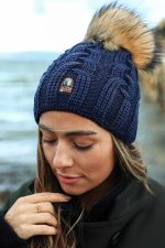 En superfin lue fra Parajumpers i sort! Luen kommer med et kabelstrikket ullmateriale, logo i front og pelsdusk på toppen. Dette er en klassisk og stilig lue – et must-have mot høst og vinteren.
