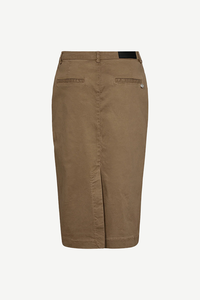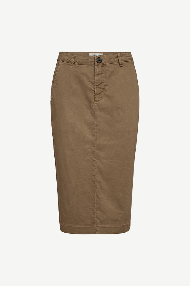 Tidløst midi-skjørt fra Pieszak! Gigi Skirt har middels høyt liv, rett passform, knappe- og glidelåslukking og split på baksiden for ekstra bevegelighet. Dette er et elegant skjørt som passer like fint til hverdag som til fest. Pynt det opp med et par hæler og en bluse, eller mer avslappet med en t-skjorte og sneakers.