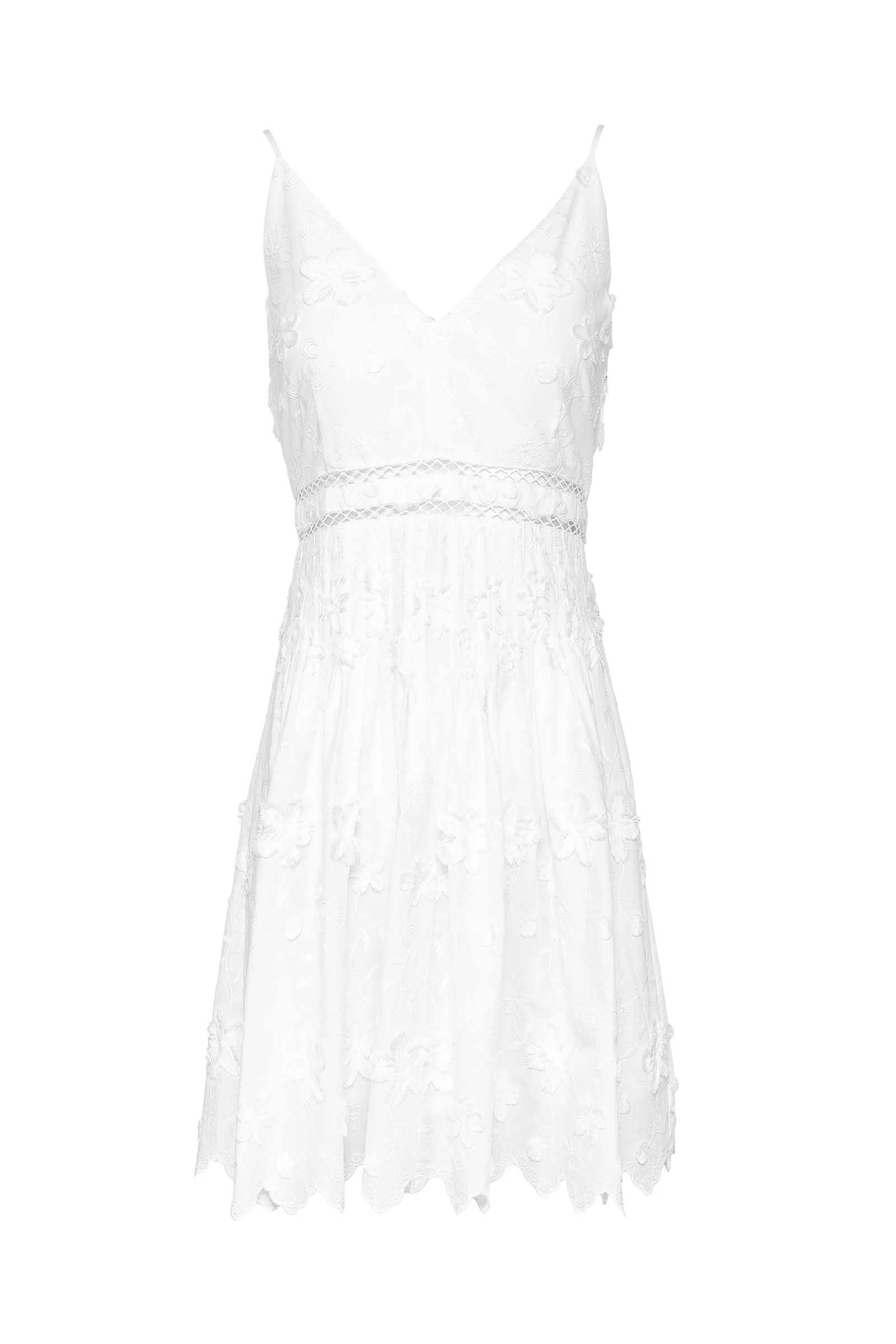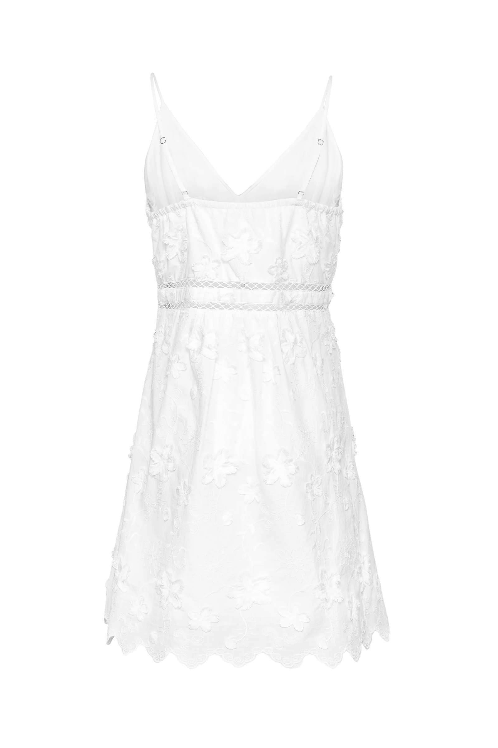 Delikat sommerkjole fra Love Lolita i klassisk hvit. Pippa Mini Dress kommer i et romantisk design med lengde til låret, tynne stropper, innsvinget midje samt delikate blomsterdetaljer. En perfekt kjole til sesongen som kan styles opp og ned. Kombiner med et par sandaler og en hatt til stranda eller kjør den med et par sneakers og en denimjakke til hverdagen.