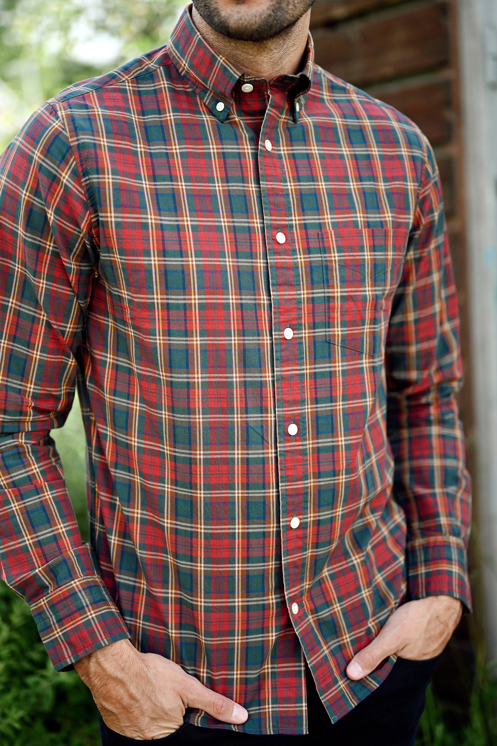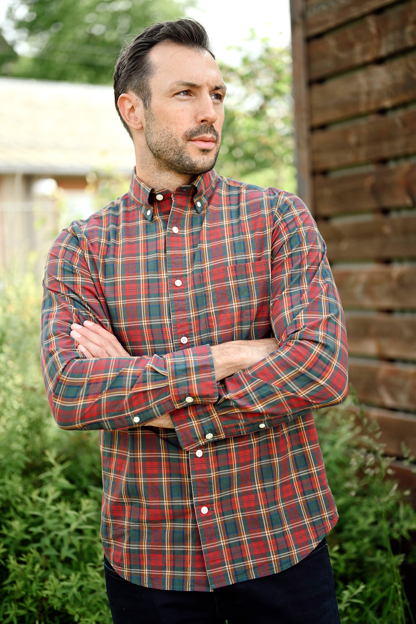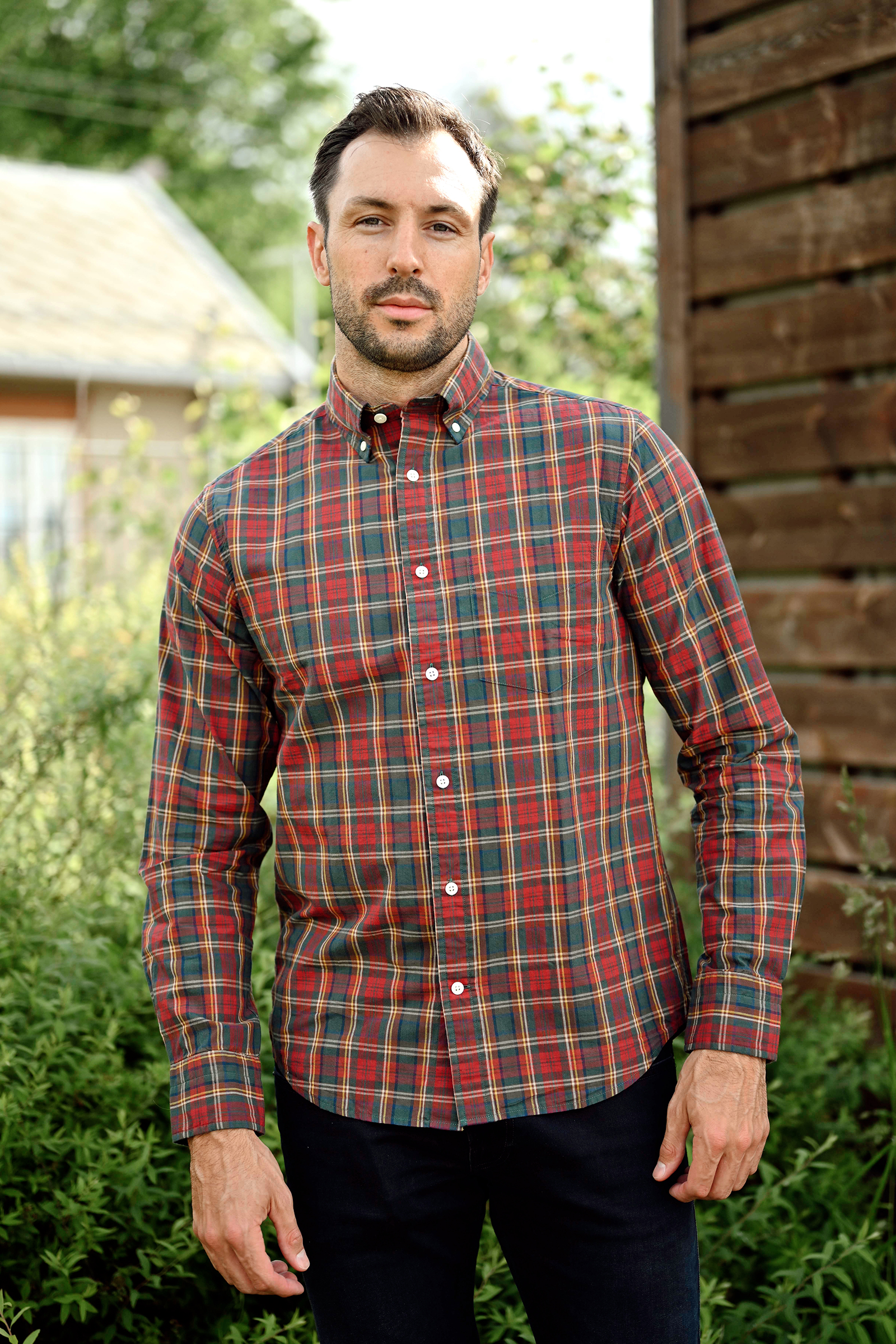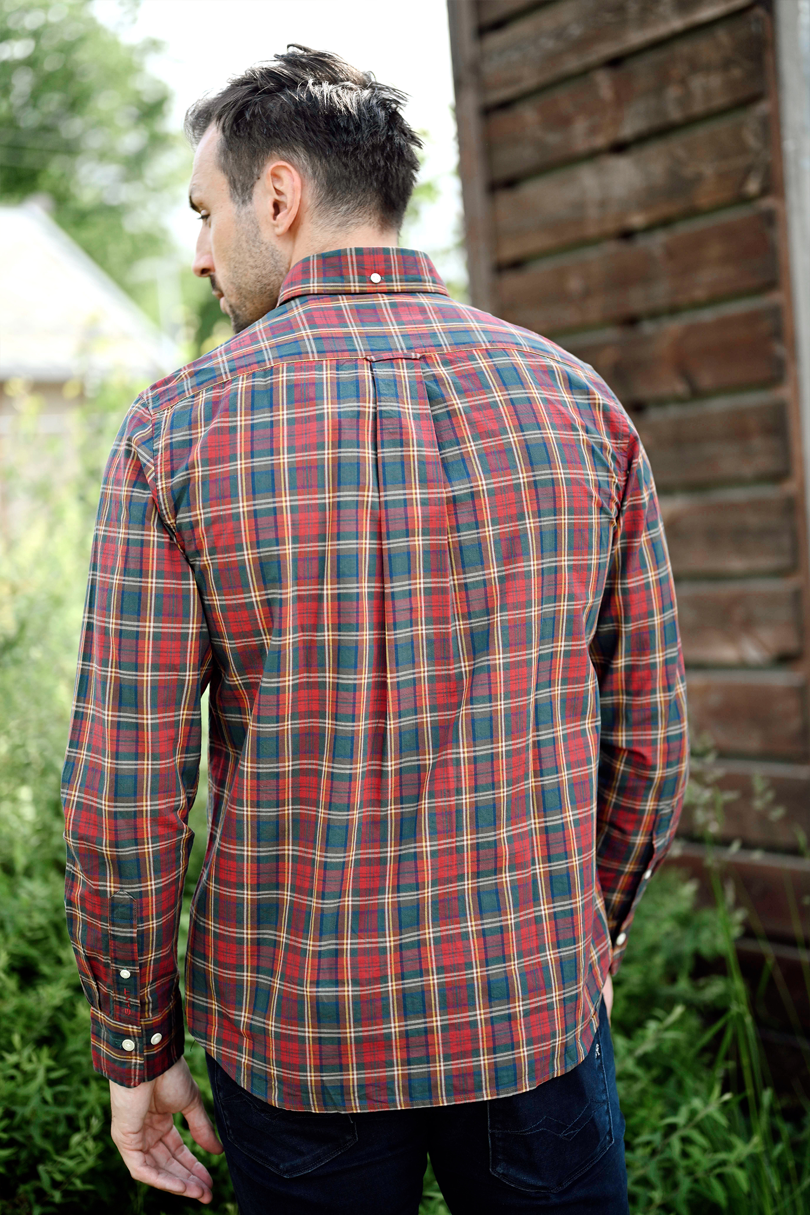 Delikat, rutete skjorte fra Gant i 100% økologisk bomull. Denne poplin skjorten kommer i et tidløst design med krage, knappestolpe, justerbare mansjetter og buet fald. Detaljer med GANT-logo brodert på brystlommen. En superfin skjorte til høsten med sine delikate ruter i rød og grønn.