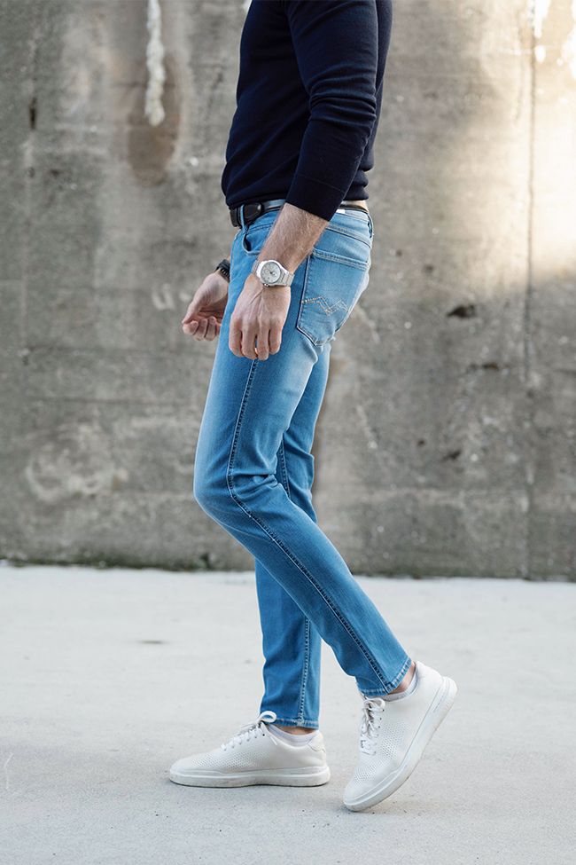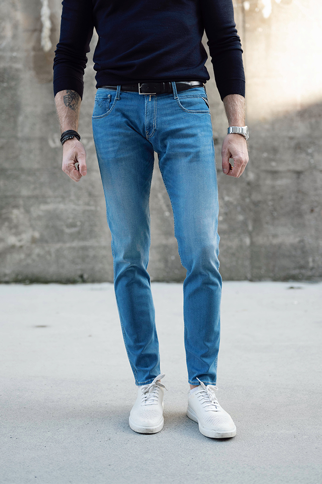 Anbass er en klassisk slim-fit jeans i en lys blå vask fra jeanseksperten Replay. Buksen har en behagelig stretch, fem lommer, kontrastfylte sømmer samt beltehemper. Ta gjerne kontakt med våre butikker dersom du ønsker veiledning angående størrelse.