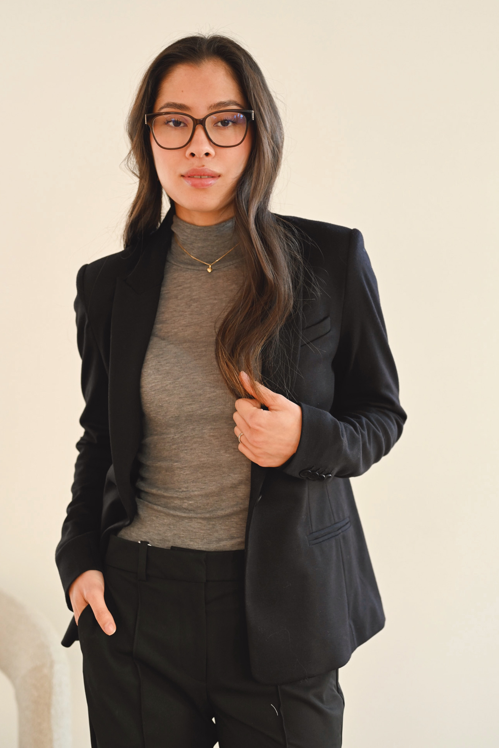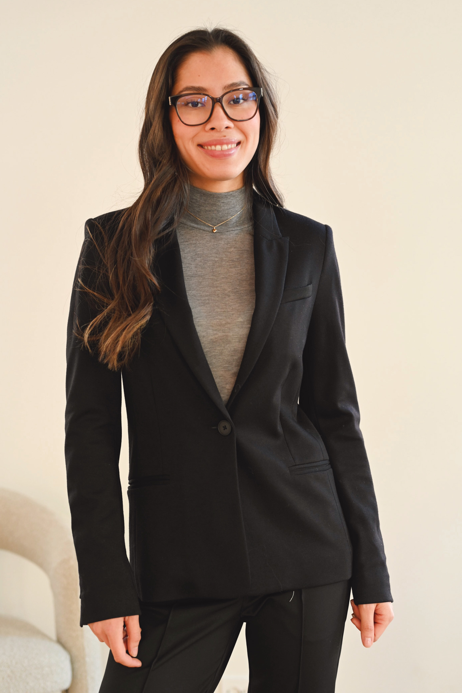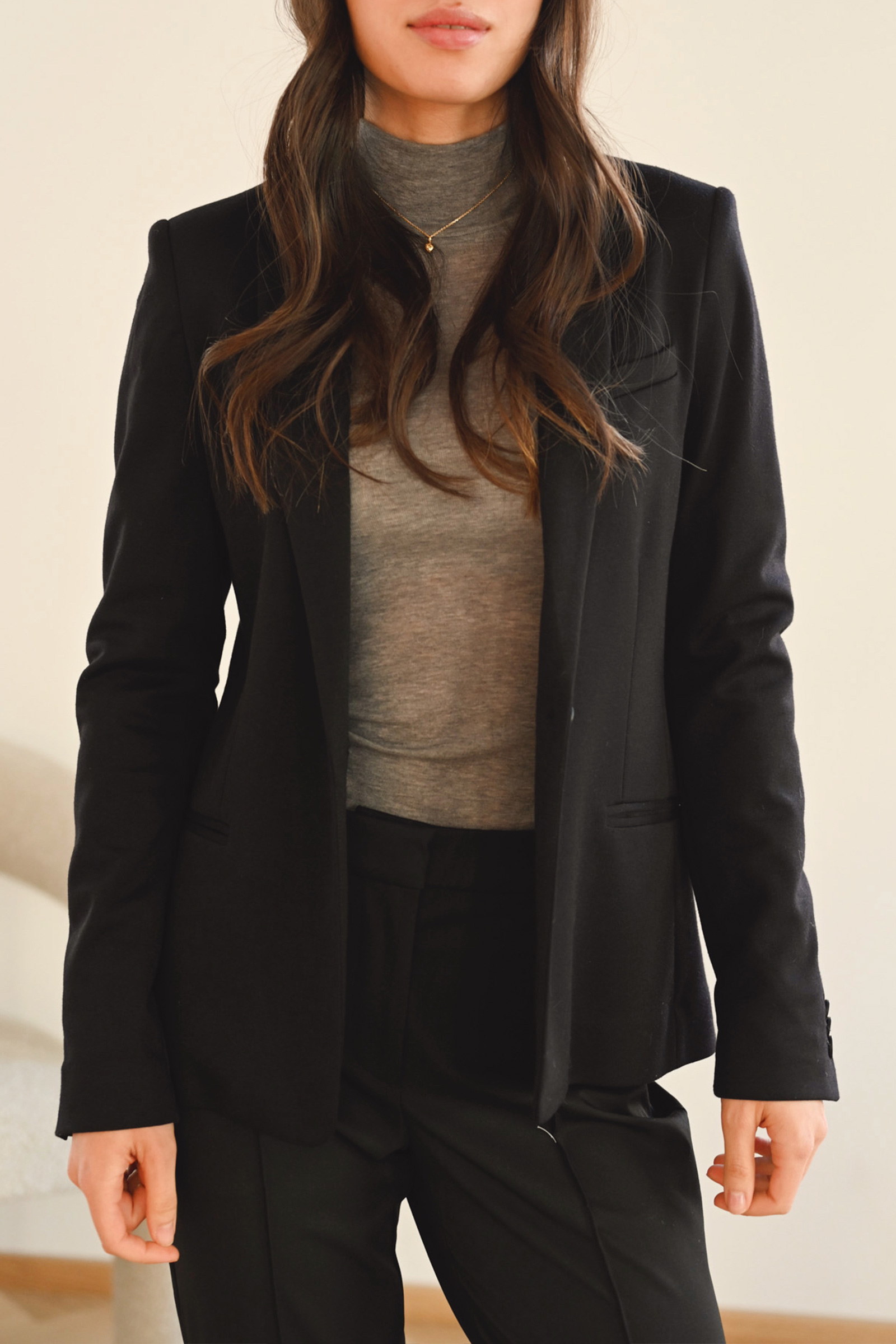 Lekker blazer fra InWear i en deilig stretchy kvalitet med en elegant og minimalistisk silhuett. Blazeren har to lommer i front, enknappslukking og en innsvinget midje for et flatterende snitt. En tidløs favoritt i garderoben som kan brukes året rundt til ulike anledninger. Finnes også i blå.