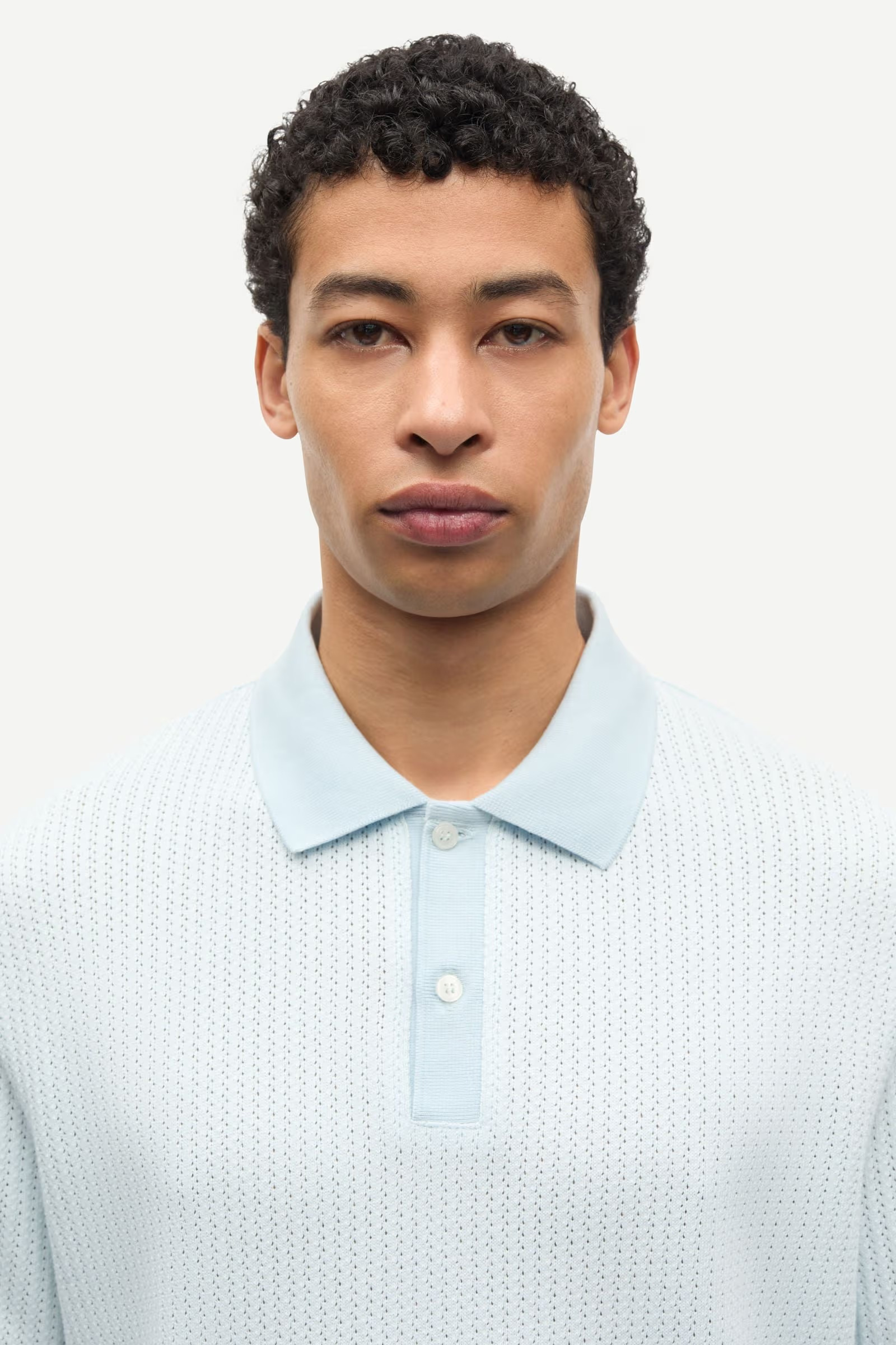 Delikat pique fra Samsøe Samsøe i vårlig blåtone. Sajase Polo har en avslappet passform med korte ermer, cut-away krage og knappelukking i halsen. Kommer i 100% bomull som er lett og ledig på kroppen. Perfekt å kombinere med et par chinos for et stilrent vår- og sommerantrekk!