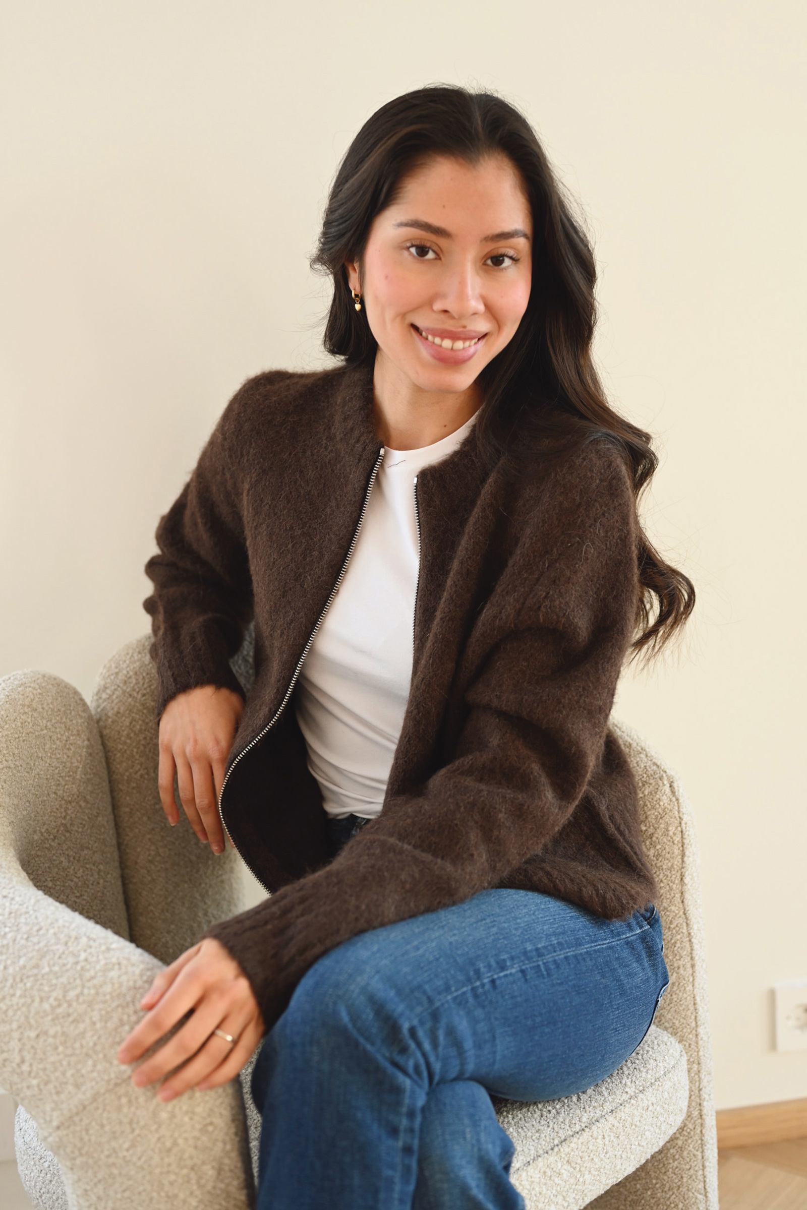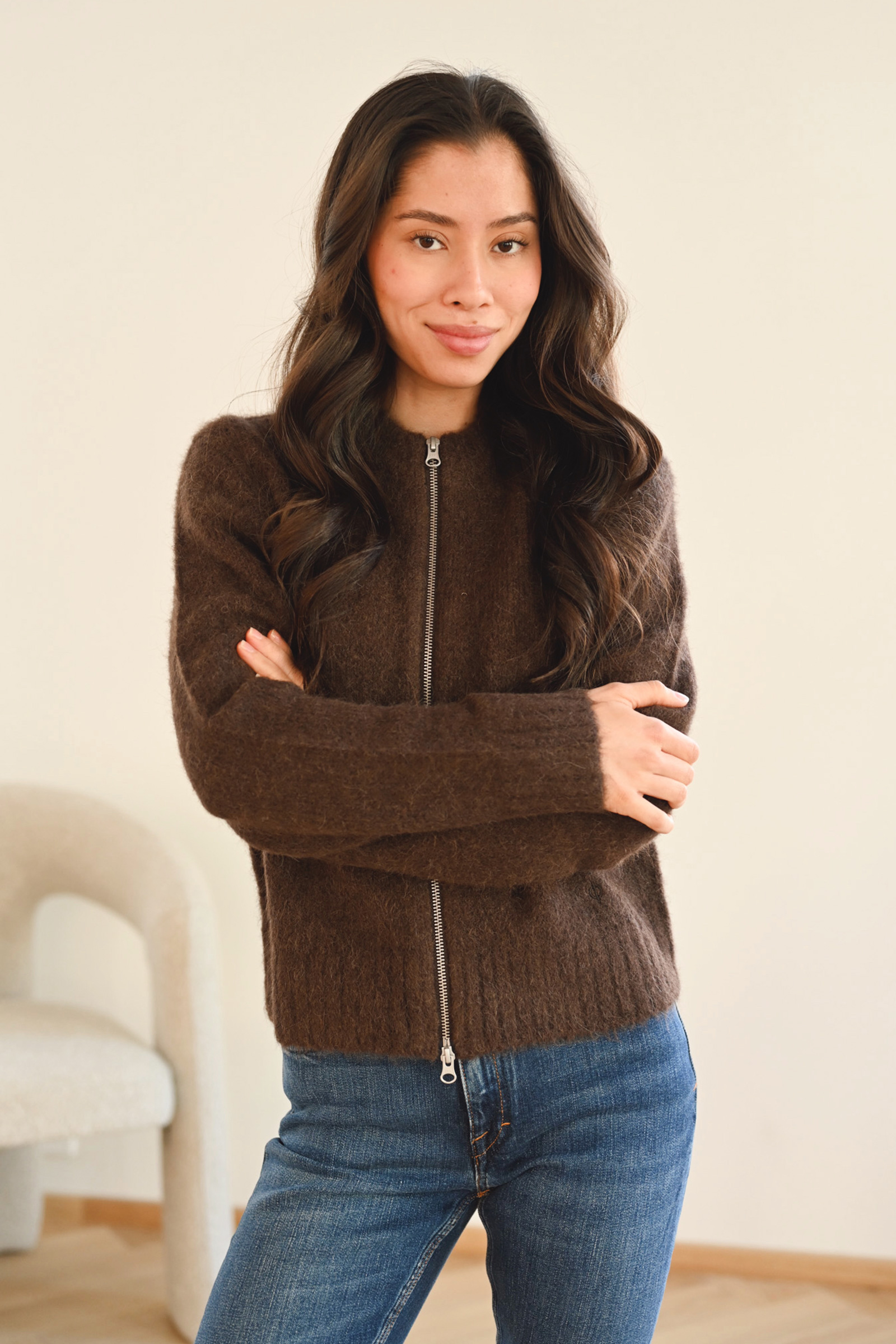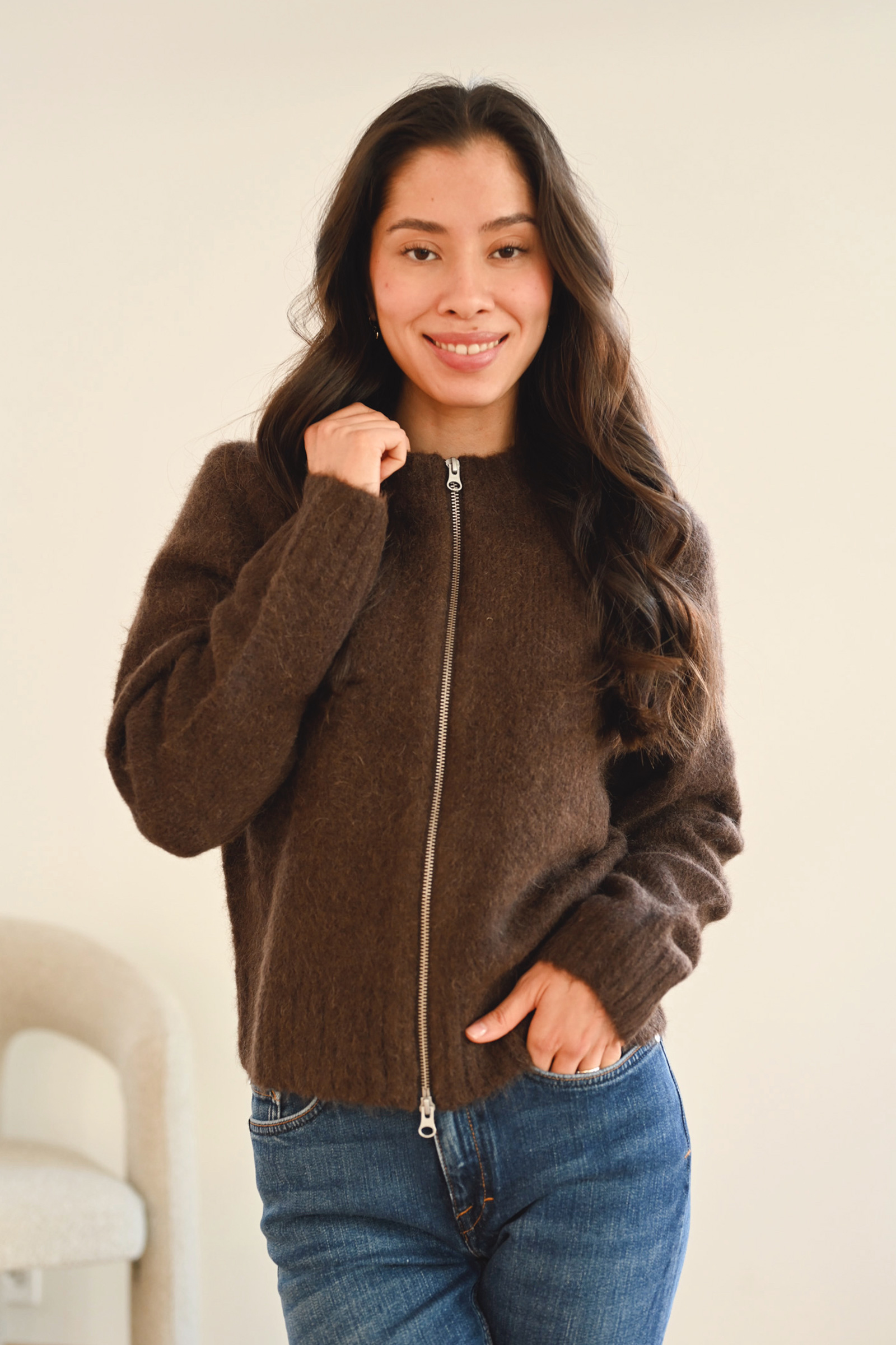 Sajeanine Zip Cardigan, Black Coffee