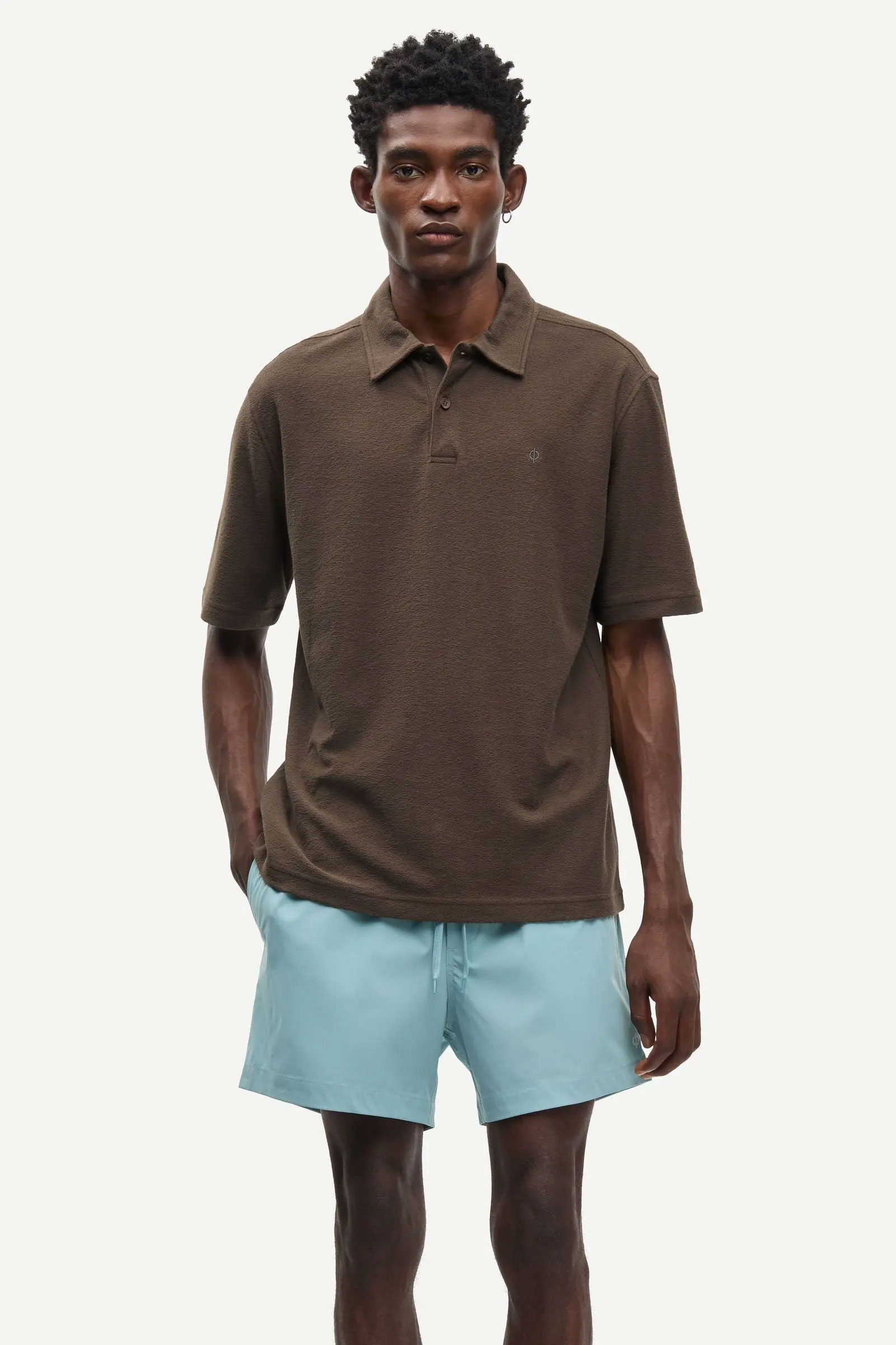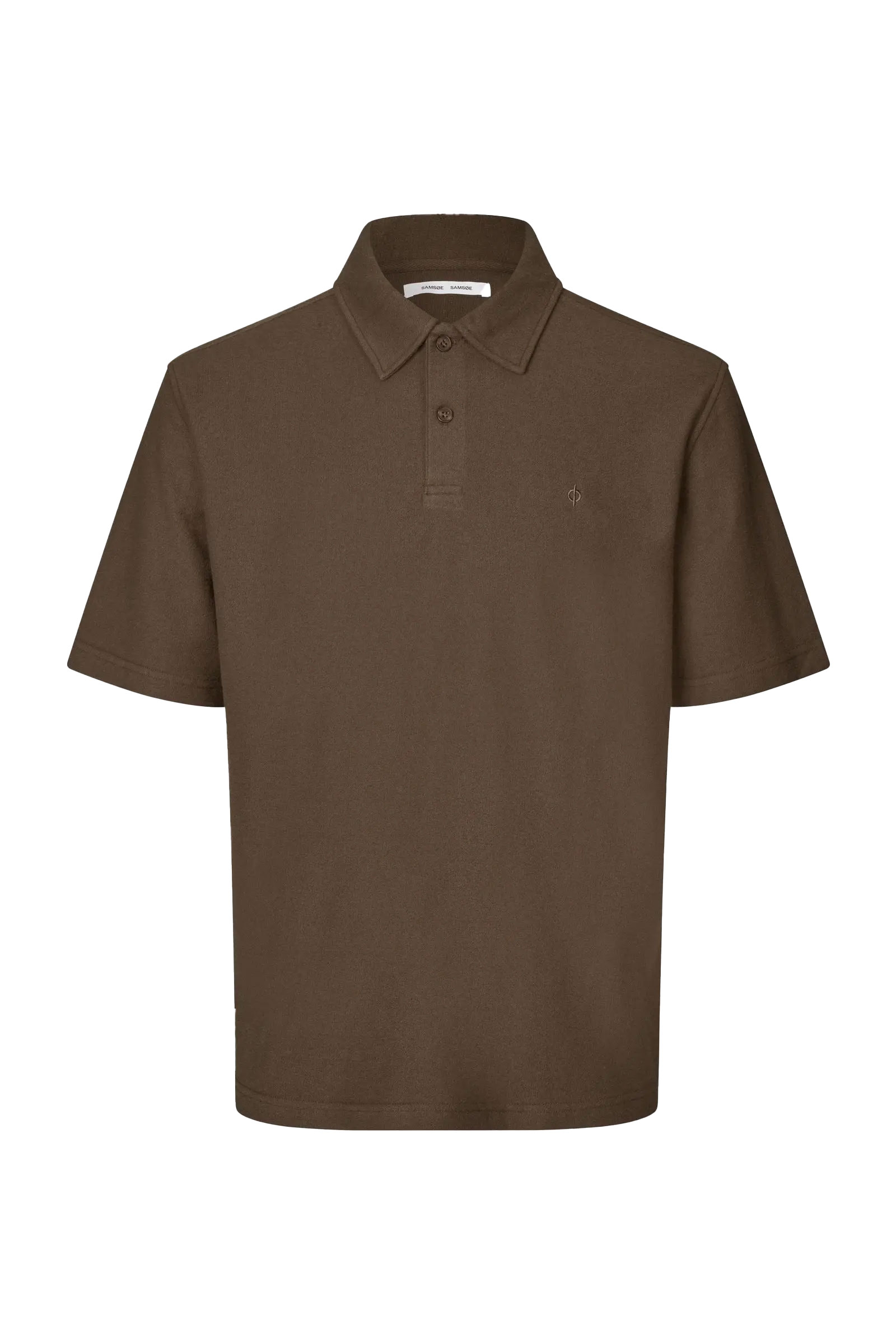 Sakvistbro Polo fra Samsøe Samsøe i en dyp brun farge for et mer varmt og moderne uttrykk. Poloen har korte ermer, klassisk krage og en ren silhuett som gjør den enkel å bruke til både hverdag og mer pyntede anledninger. Laget i en komfortabel blanding av økologisk bomull og resirkulert polyester som gir god pusteevne og komfort. Styles med lyse bukser eller denim for en balansert look.