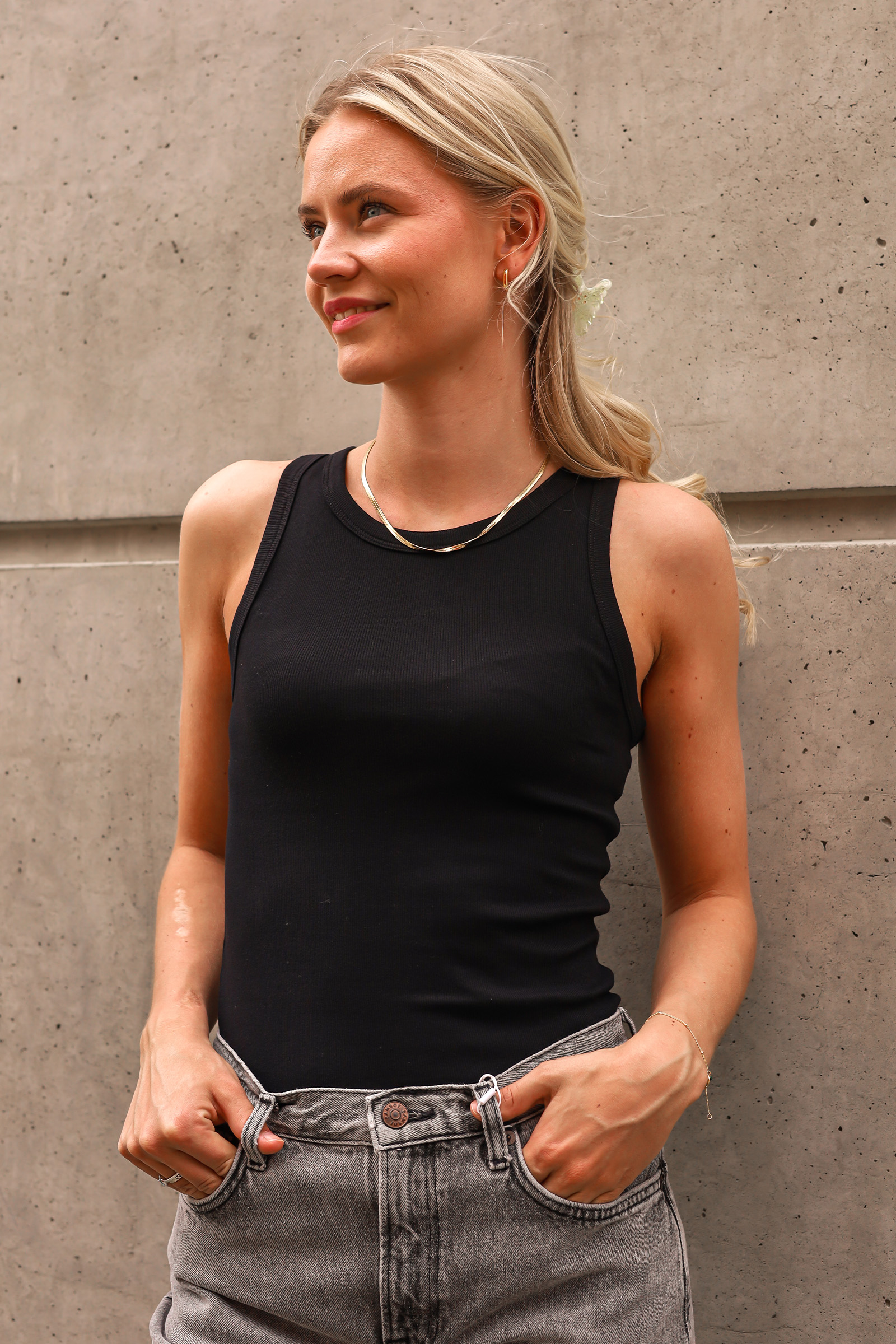 En klassisk tank-top i organisk bomull fra Samsøe Samsøe. Alexo har en fin ribb-kvalitet, rund hals og god stretch. Det perfekte baseplagg som er et must i kapsel-garderoben.