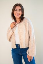 Delikat cardigan fra Urban Pioneers i en nydelig blåfarge. Santina kommer med en rund hals, lange ermer og knappelukking øverst for en søt look. Med sin deilige mohairblanding er dette en genser som varmer godt både på kjølige hverdager og på sene kvelder over kjoler.