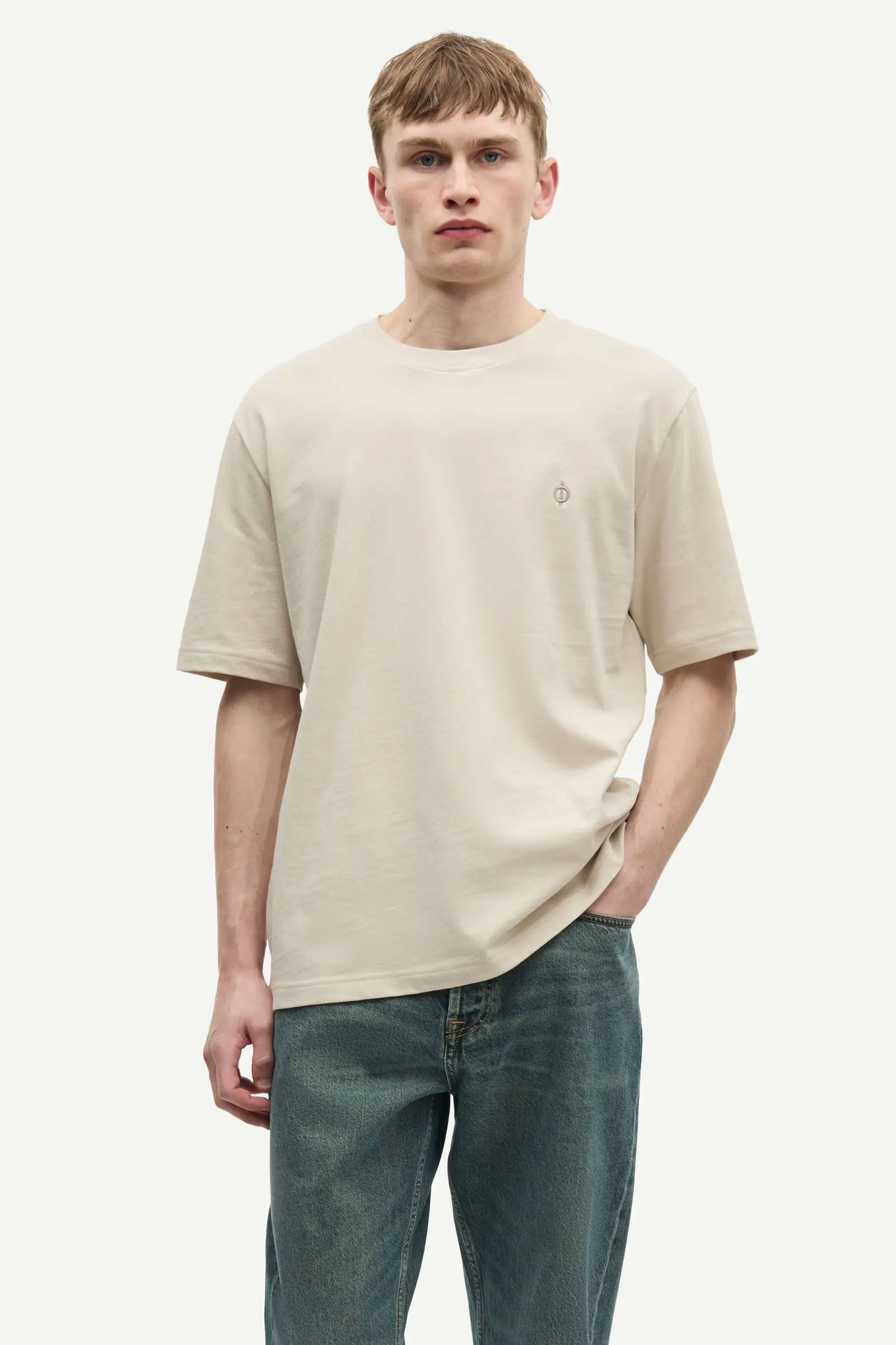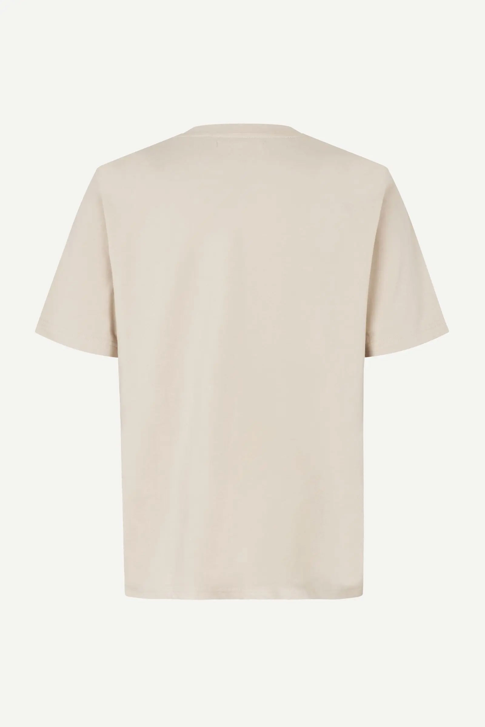 Nyhet fra Samsøe Samsøe! Saotto – en klassisk t-skjorte i delikat beige! T-skjorten har en normal passform, rund hals og en diskret brodert Samsøe Samsøe-logo på brystet. Den perfekte t-skjorten til basegarderoben og som alltid er en sikker vinner. Denne kan enkelt styles med det meste, men er er supert valg med en jeans eller en chinos for en stilren, men avslappet hverdagslook.