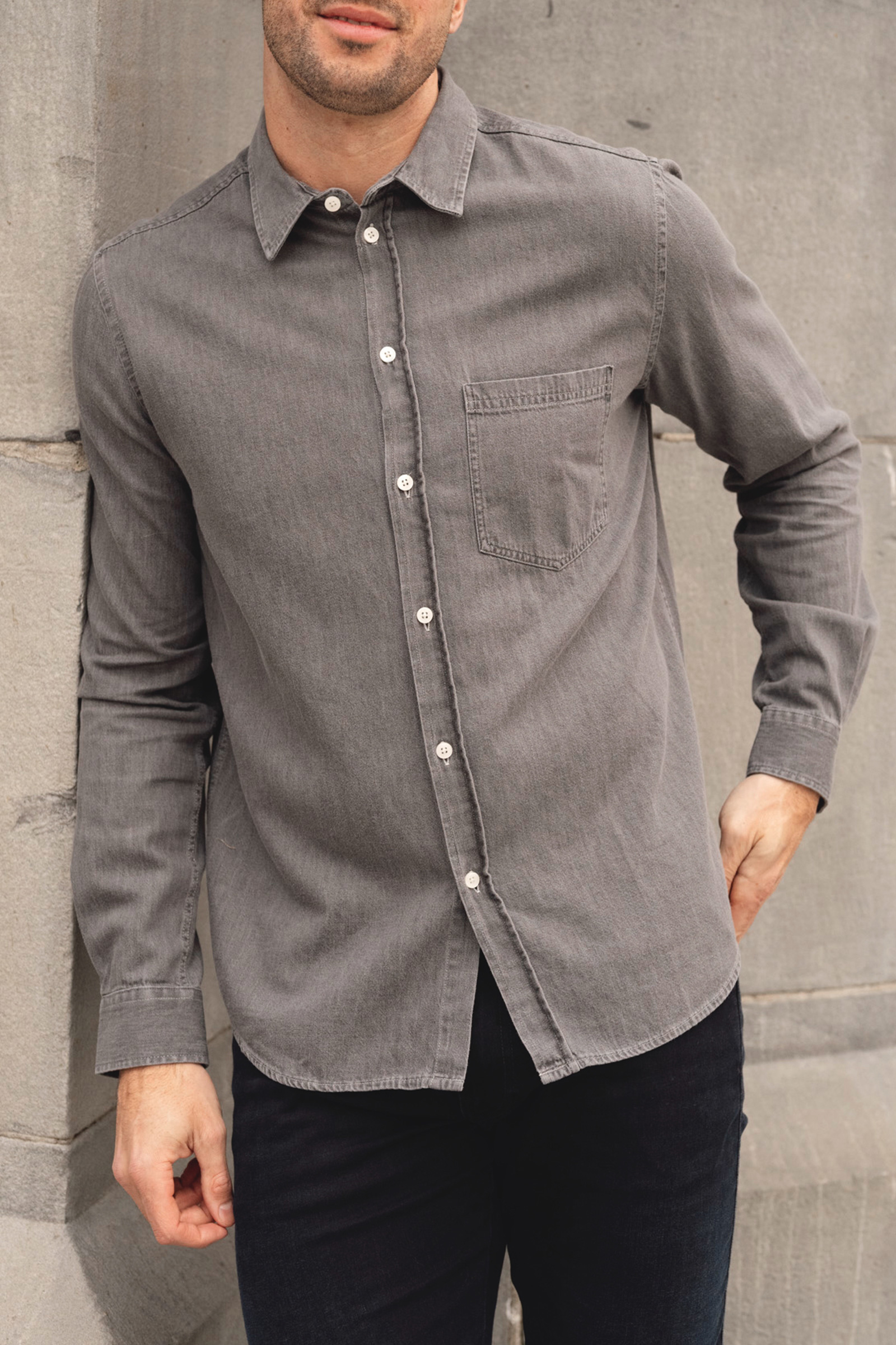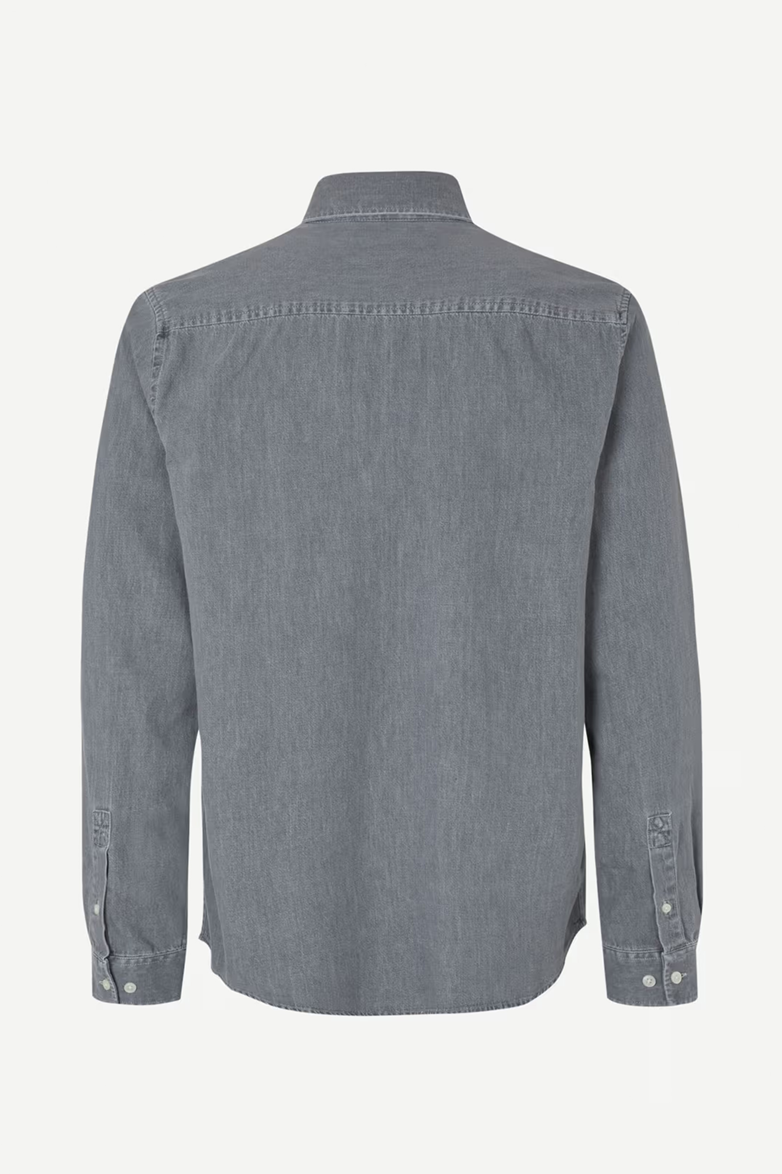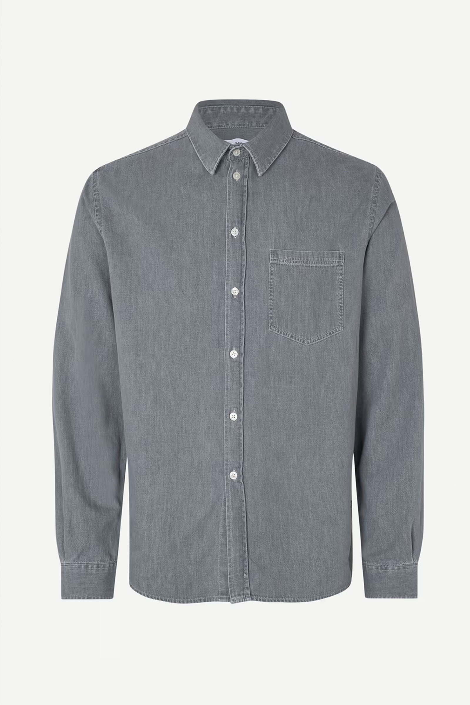 Klassisk base fra Samsøe Samsøe i grå denim! Saryan Shirt kommer i en rett passform, knappestolpe i lyse knapper samt en krage. Med sin tidløse gråfarge er dette en skjorte som er et must i alle klesskap og kan brukes like gjerne åpen med en t-skjorte under som lukket. Kommer i 100% organisk bomull.