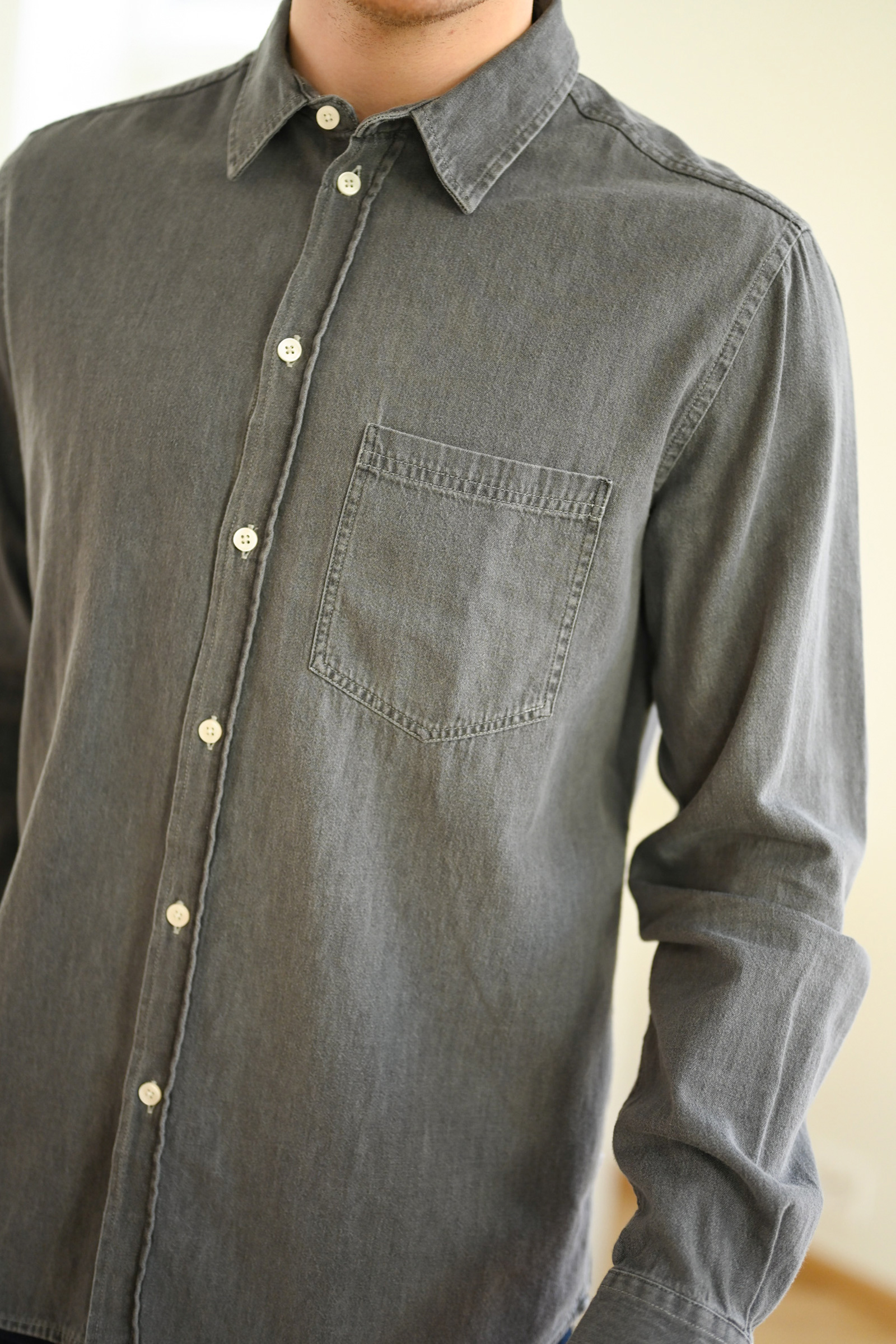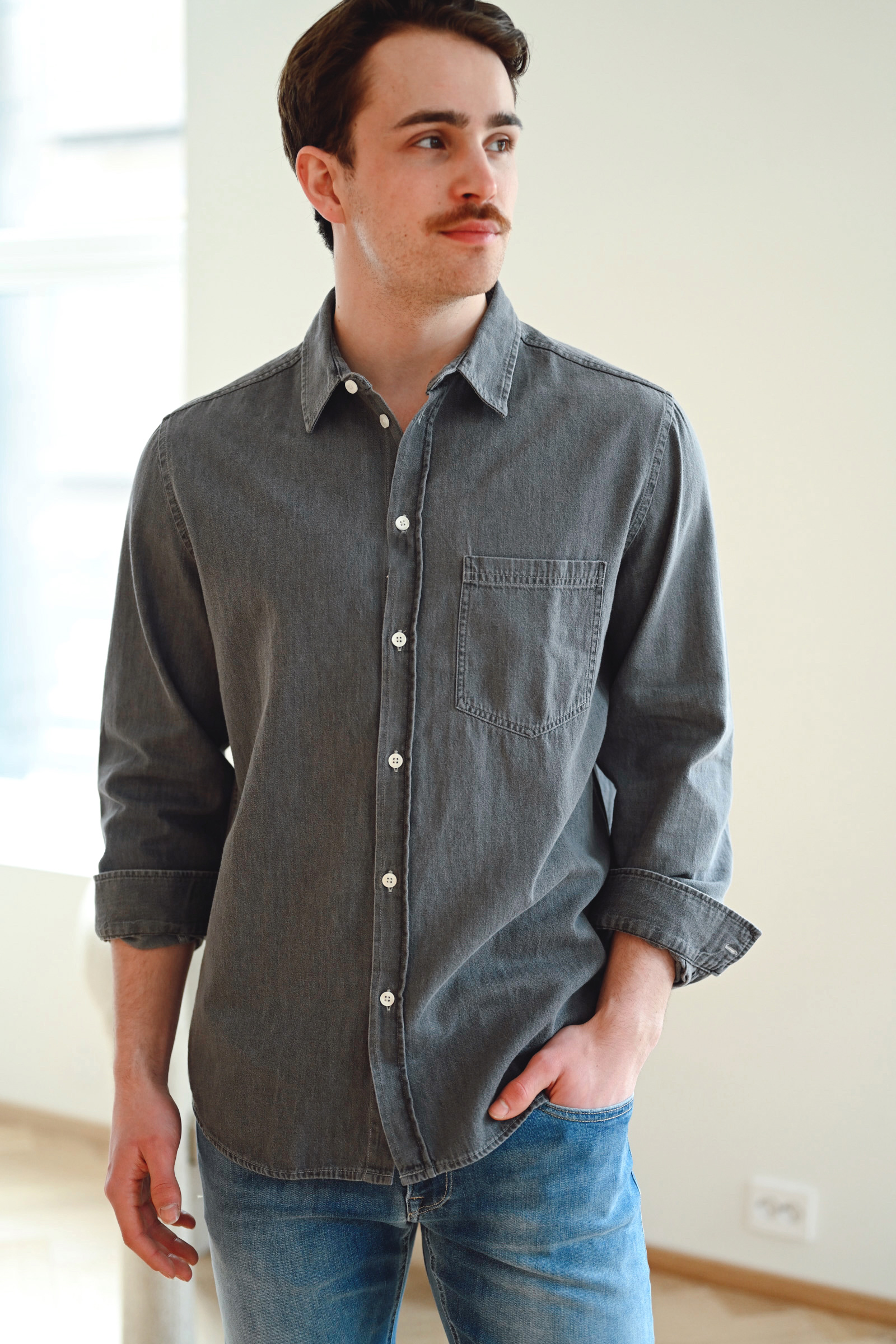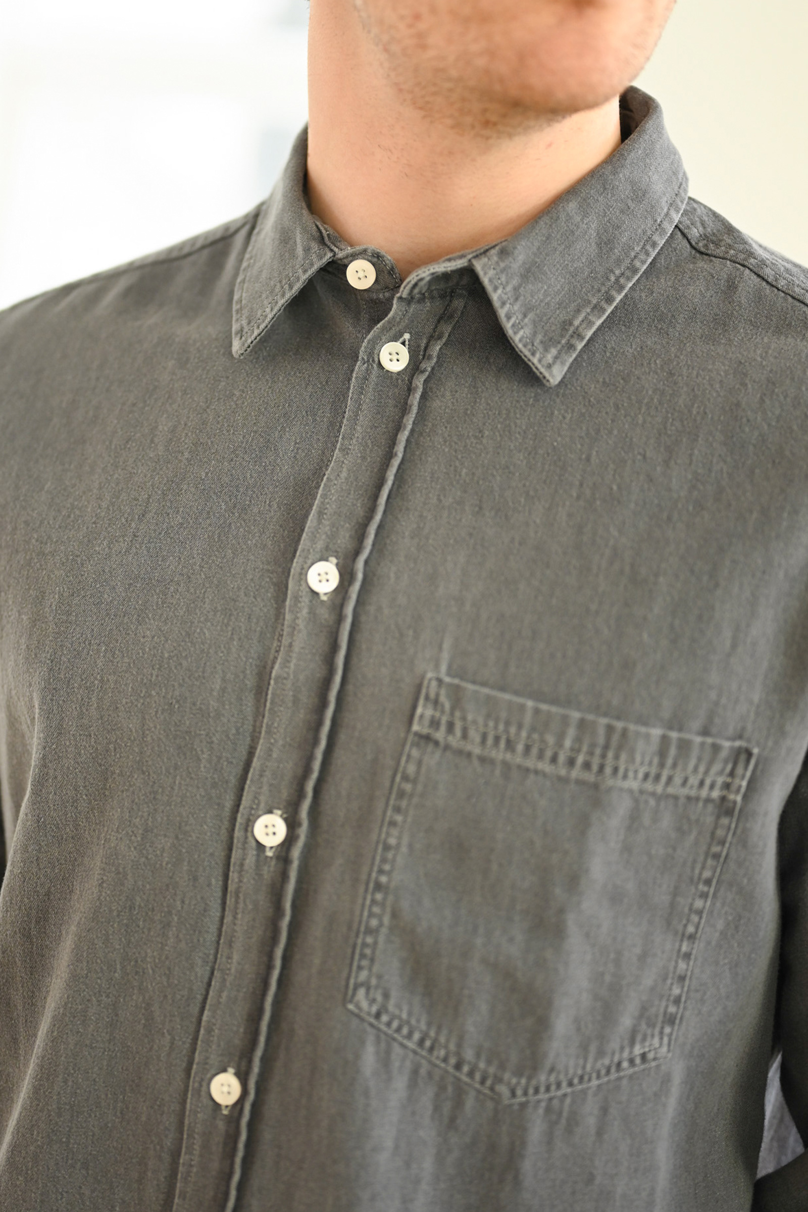 Klassisk base fra Samsøe Samsøe i grå denim! Saryan Shirt kommer i en rett passform, knappestolpe i lyse knapper samt en krage. Med sin tidløse gråfarge er dette en skjorte som er et must i alle klesskap og kan brukes like gjerne åpen med en t-skjorte under som lukket. Kommer i 100% organisk bomull.