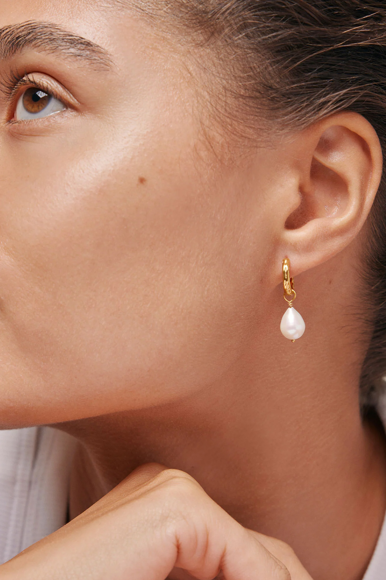 Enamel Copenhagens klassiske lille hoop med en stilig tvist! Significant Pearl Hoops kommer med en elegant hvit perle som står i kontrast med en grov og nydelig hoop. Perlefestet kan tas av ved behov, slik at du har to i en ørering. Den eksklusive og simple perle-hoopen passer godt til å matche med liknende smykker i gull og med perler.