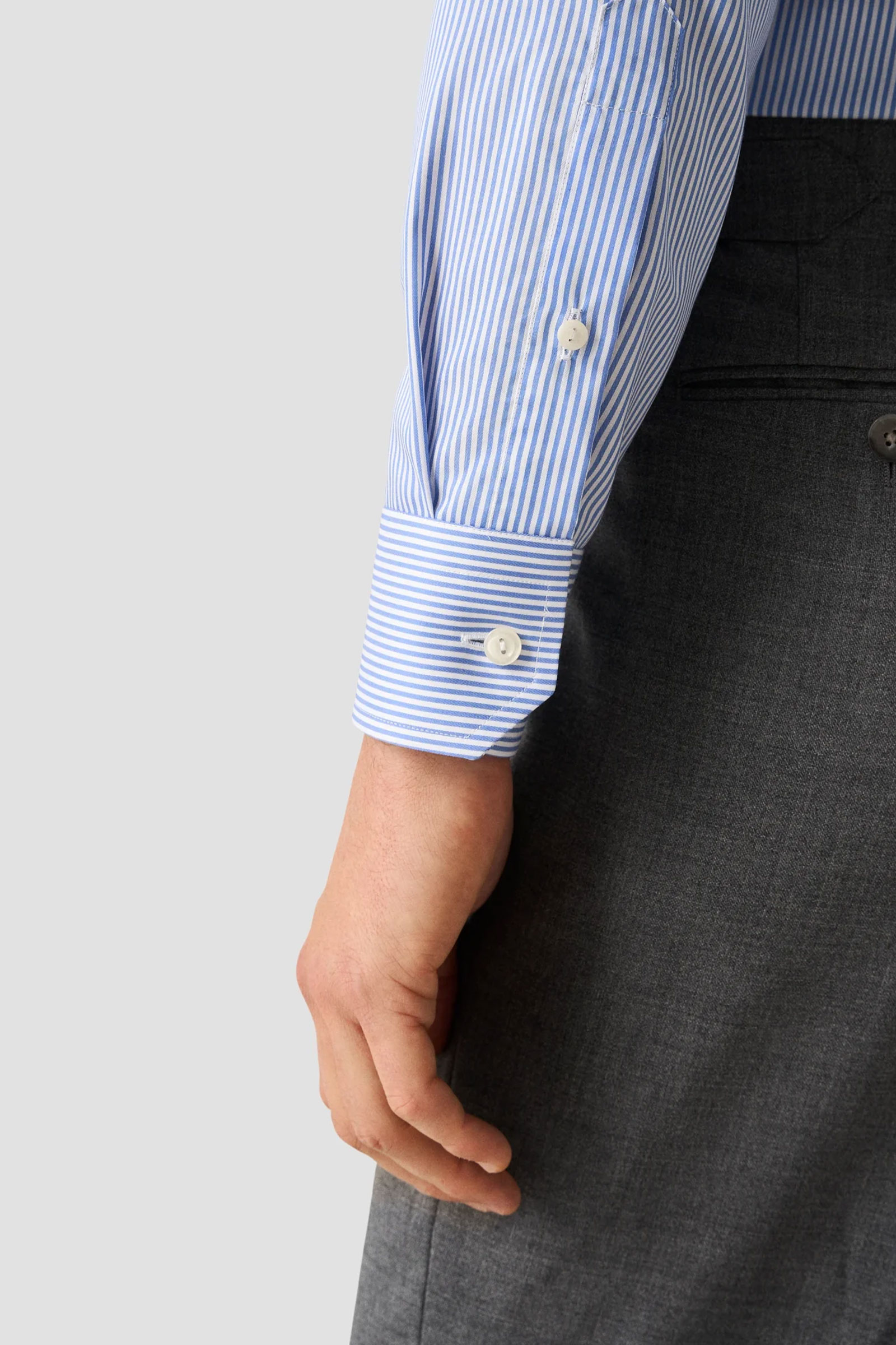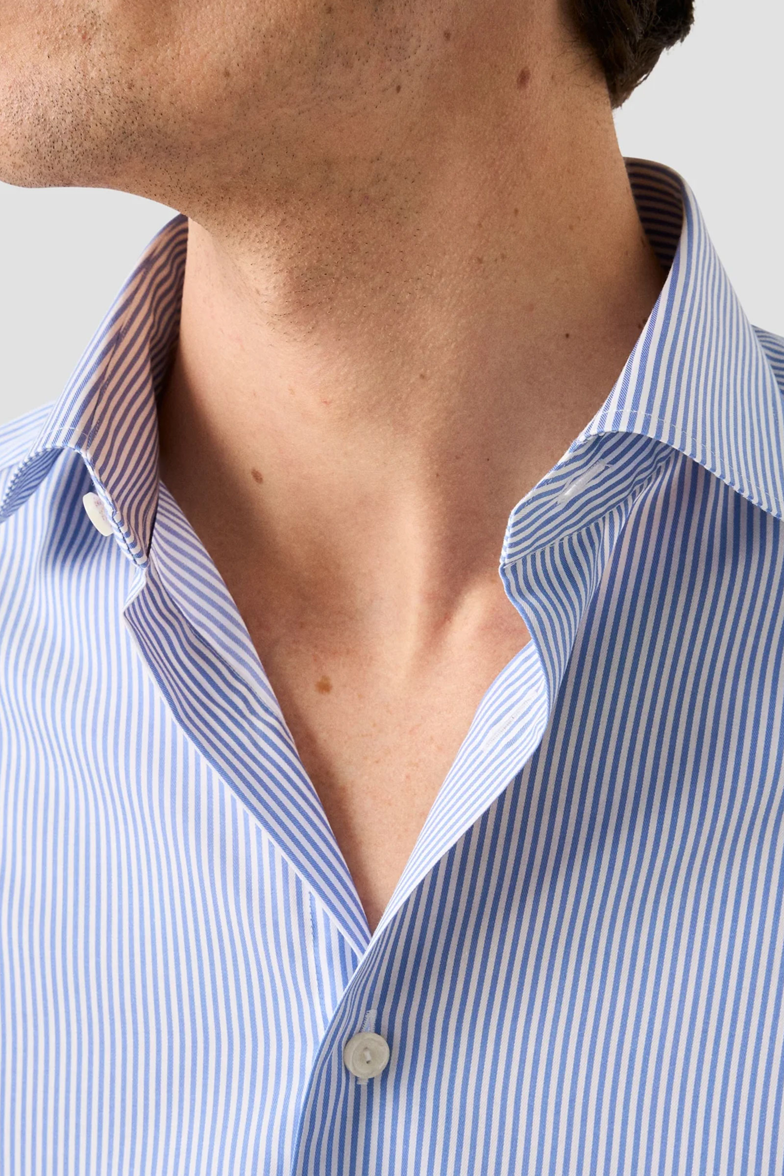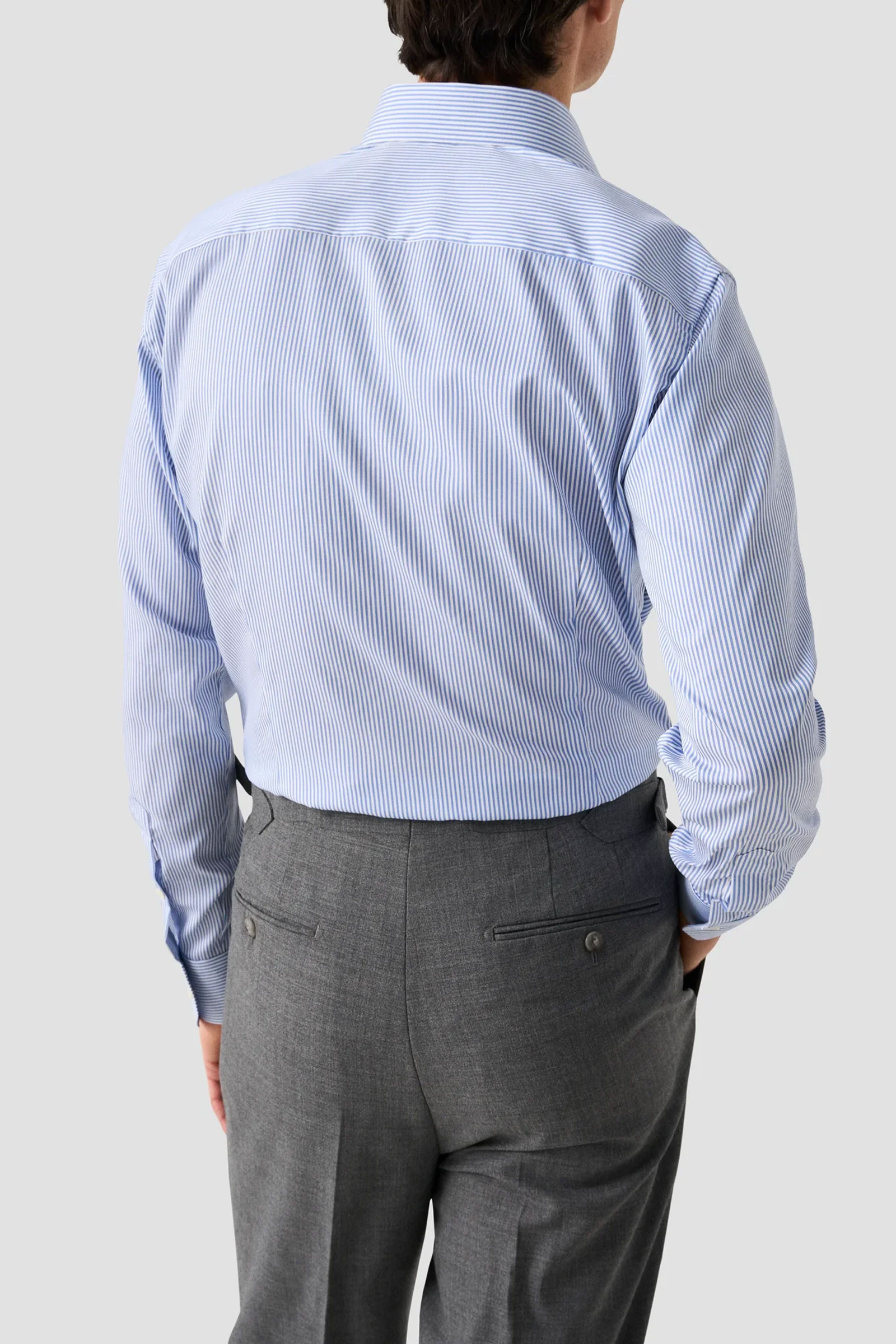 Pen og klassisk skjorte fra kvalitetsmerket Eton med blå striper. Skjorten har en klassisk krage, knappelukking i front, lyse knapper og en slim passform. Kommer i 100% bomull som gjør skjorten både slitesterk, enkel å ta vare på og behagelig på. Laget i deres ikoniske twill-kvalitet som gjør at den holder seg rynkefri gjennom hele dagen. Like fin til en dress – som chinos og en genser. Style: 100013397