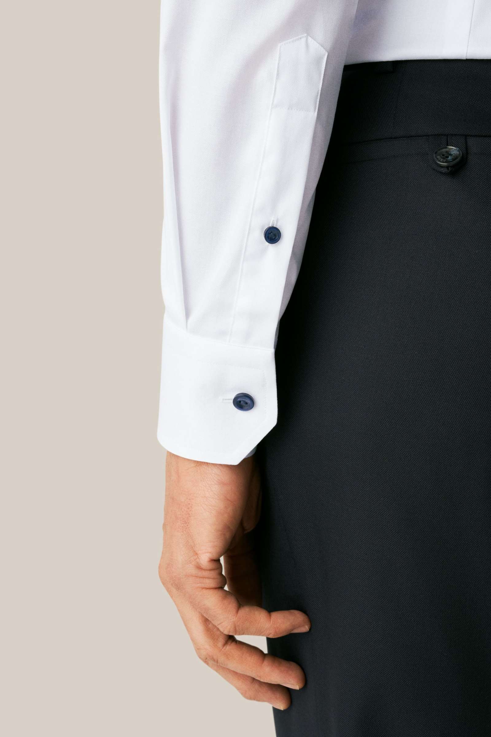 Denne klassiske hvite dresskjorten fra Eton er perfekt for enhver anledning. Skjorten er skåret fra det ikoniske Signature Twill-stoffet, et materiale som har blitt perfeksjonert for å sikre langvarig bruk og rynkefri komfort. Oppdatert med organisk bomull, har skjorten en stilig navy piping inne i frontplagget og matchende knapper som gir et sofistikert og elegant utseende.