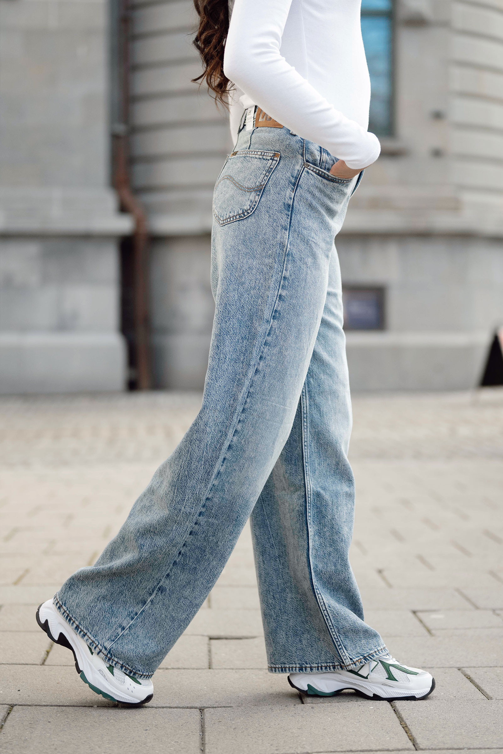 Trendy jeans fra Lee i en kulere, blå vask – ny favoritt utover vårsesongen! Stella A Line har høyt liv, lommer i front og bak samt vide ben i trendy lengde som gir buksen en tøffere og moderne look. Kombiner buksen med en deilig strikk og sneakers til hverdag for en avslappet og stilren look!
