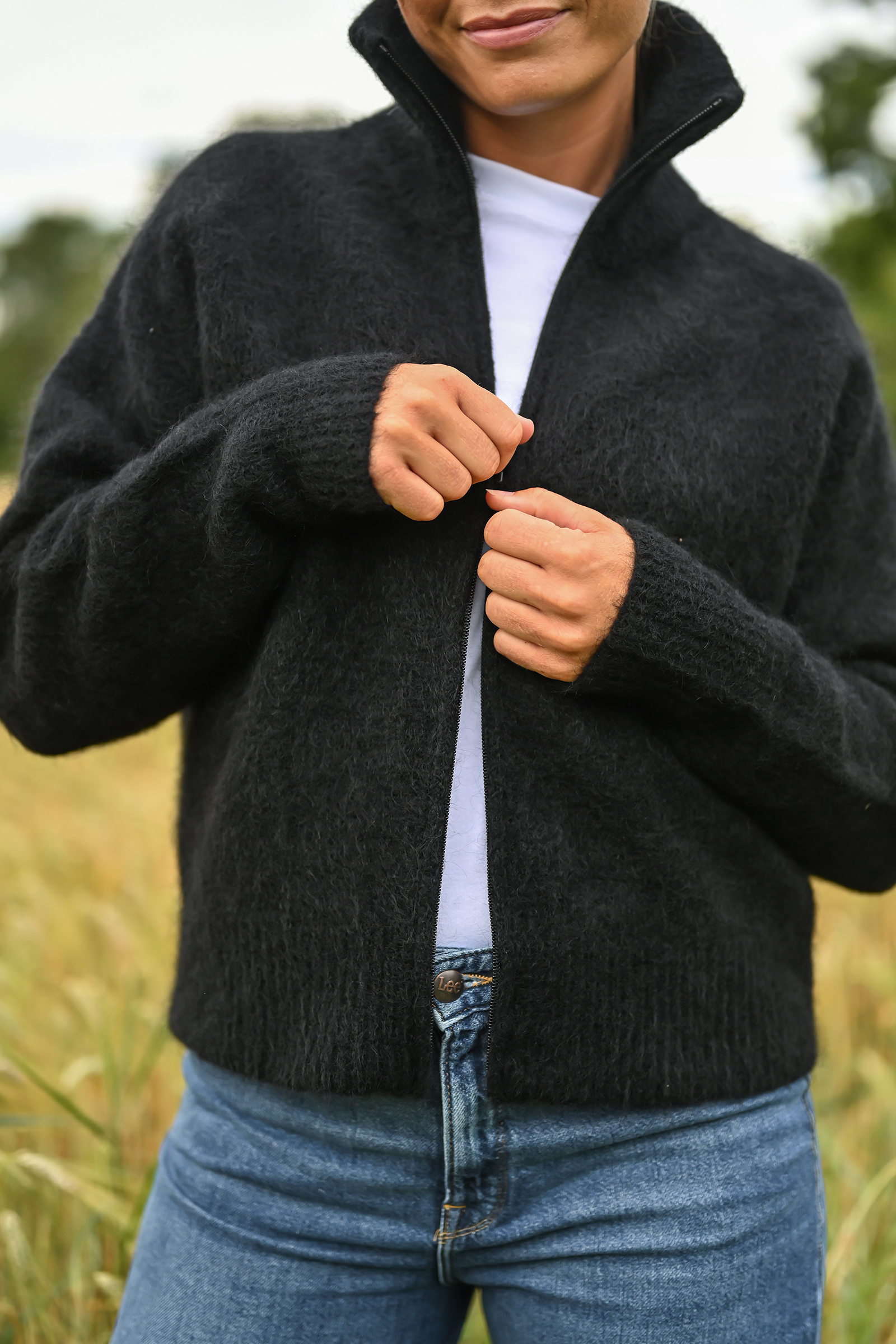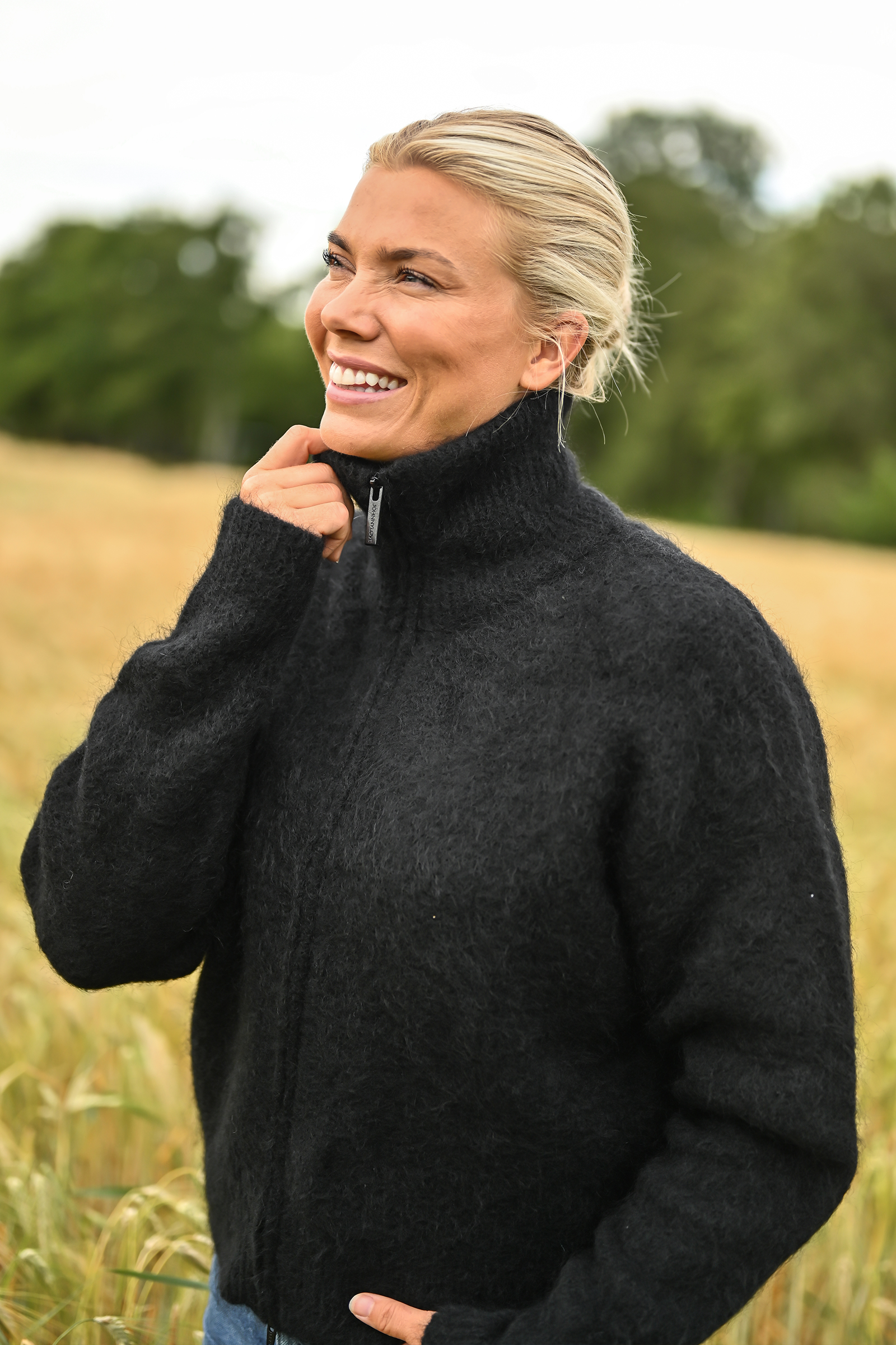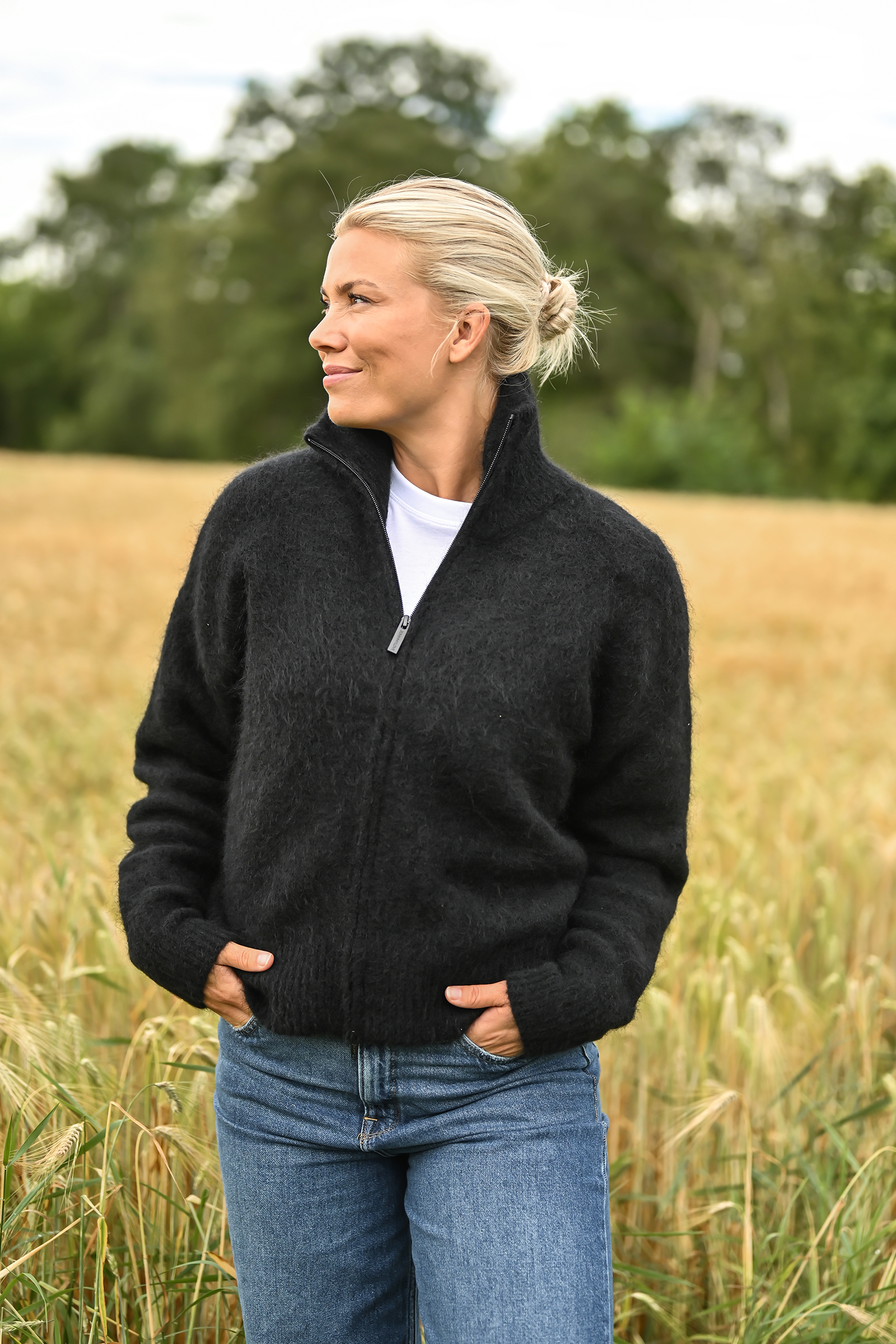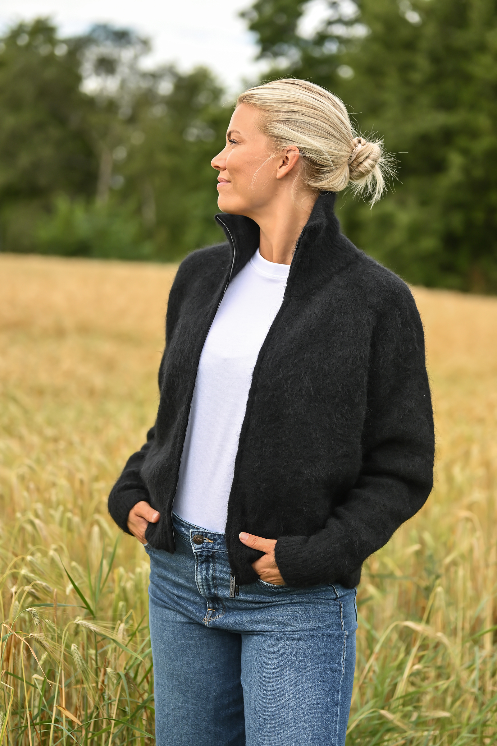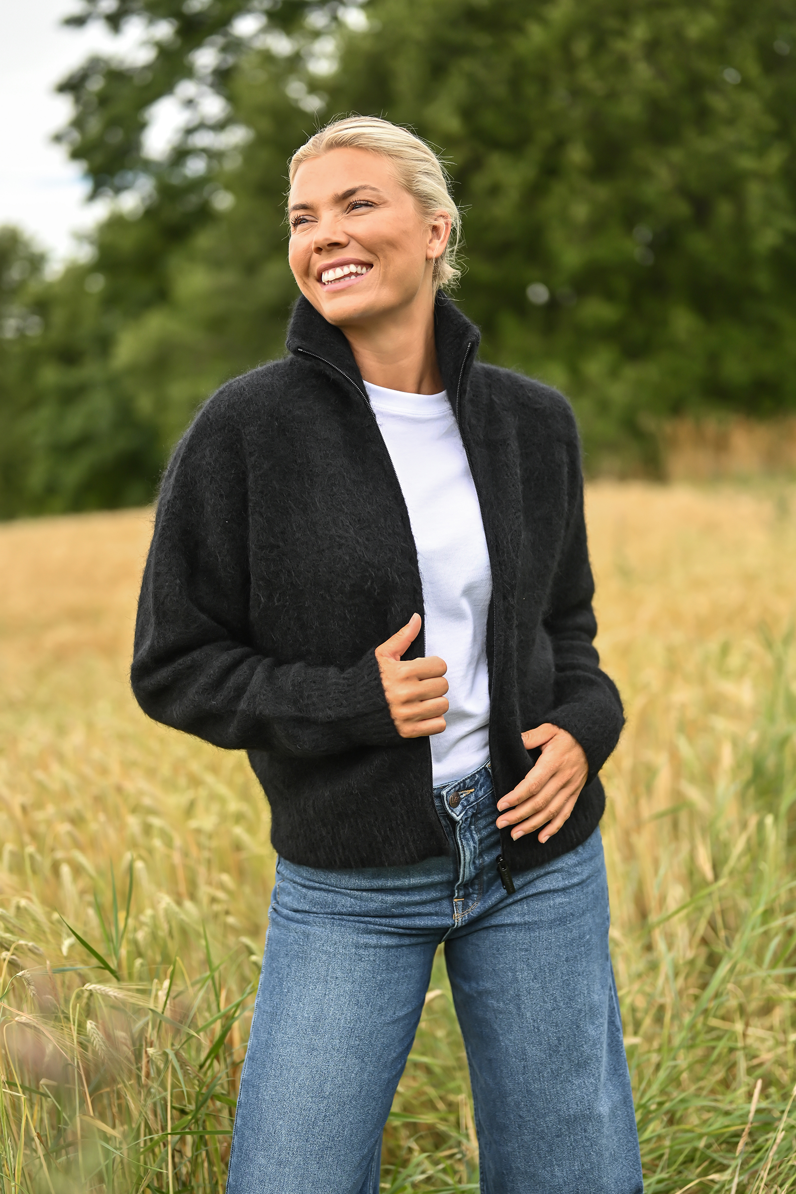 Bestselgeren fra Johnnylove er endelig tilbake! Susy kommer i en deilig mohair blanding, og er et must-have mot høst og vinteren. Cardiganen har høy hals, toveis glidelåslukking hele veien i front, og har en rett passform. En nydelig jakke som kan brukes både lukket og igjen. Denne cardiganen holder seg svært godt – i fasong og materiale. Perfekt å kombinere med jeans og t-skjorter – eller over en kjole for en penere look.