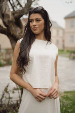 Lina Top er en lett og ledig topp i lin og viskoseblanding fra Urban Pioneers. Toppen har en avslappet passform og boxy passform, rund hals og knappelukking i nakken på baksiden. Dette er den perfekte toppen å slenge over et par linbukser eller skjørt på varme dager for et pent og avslappet antrekk!