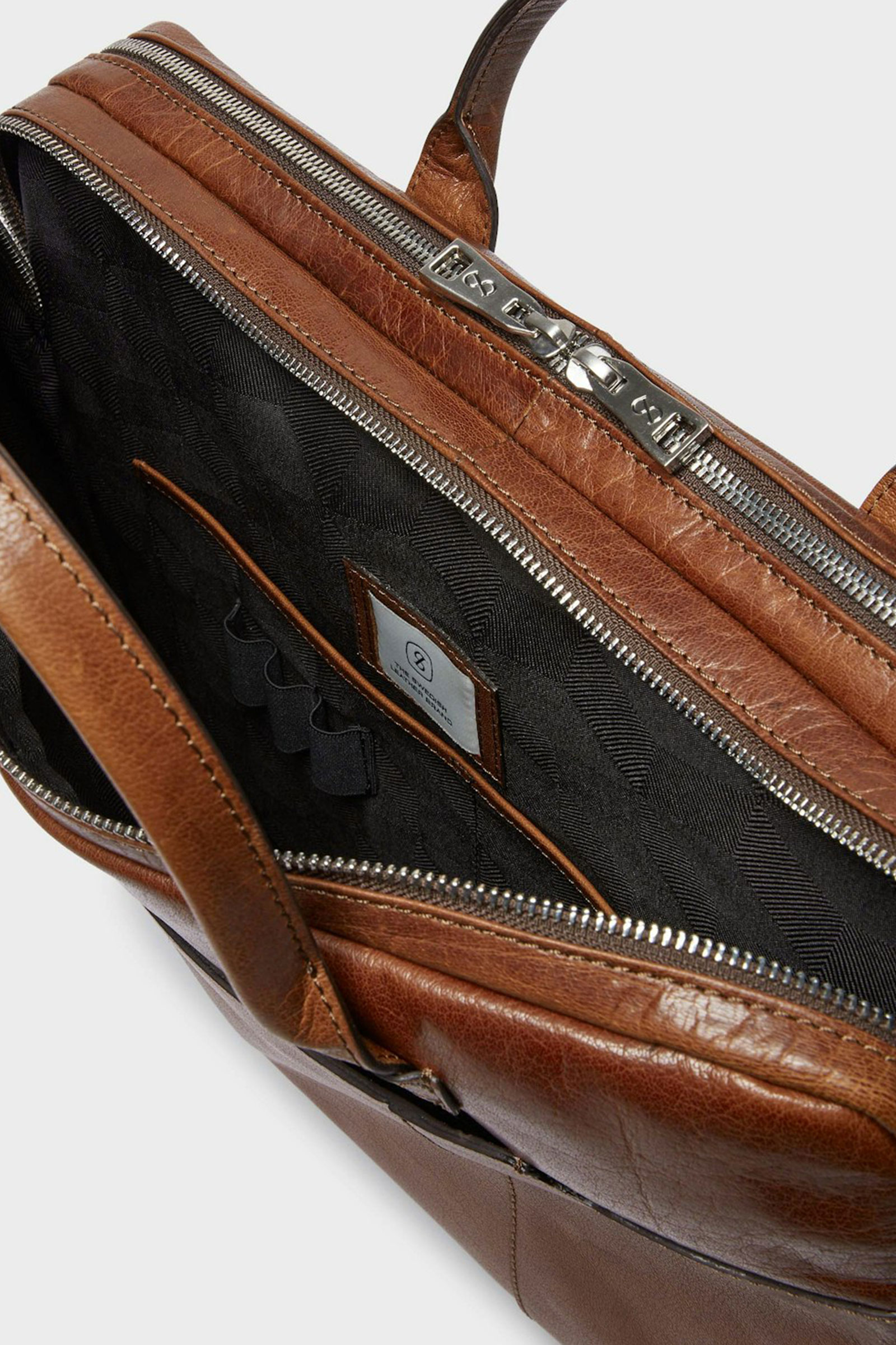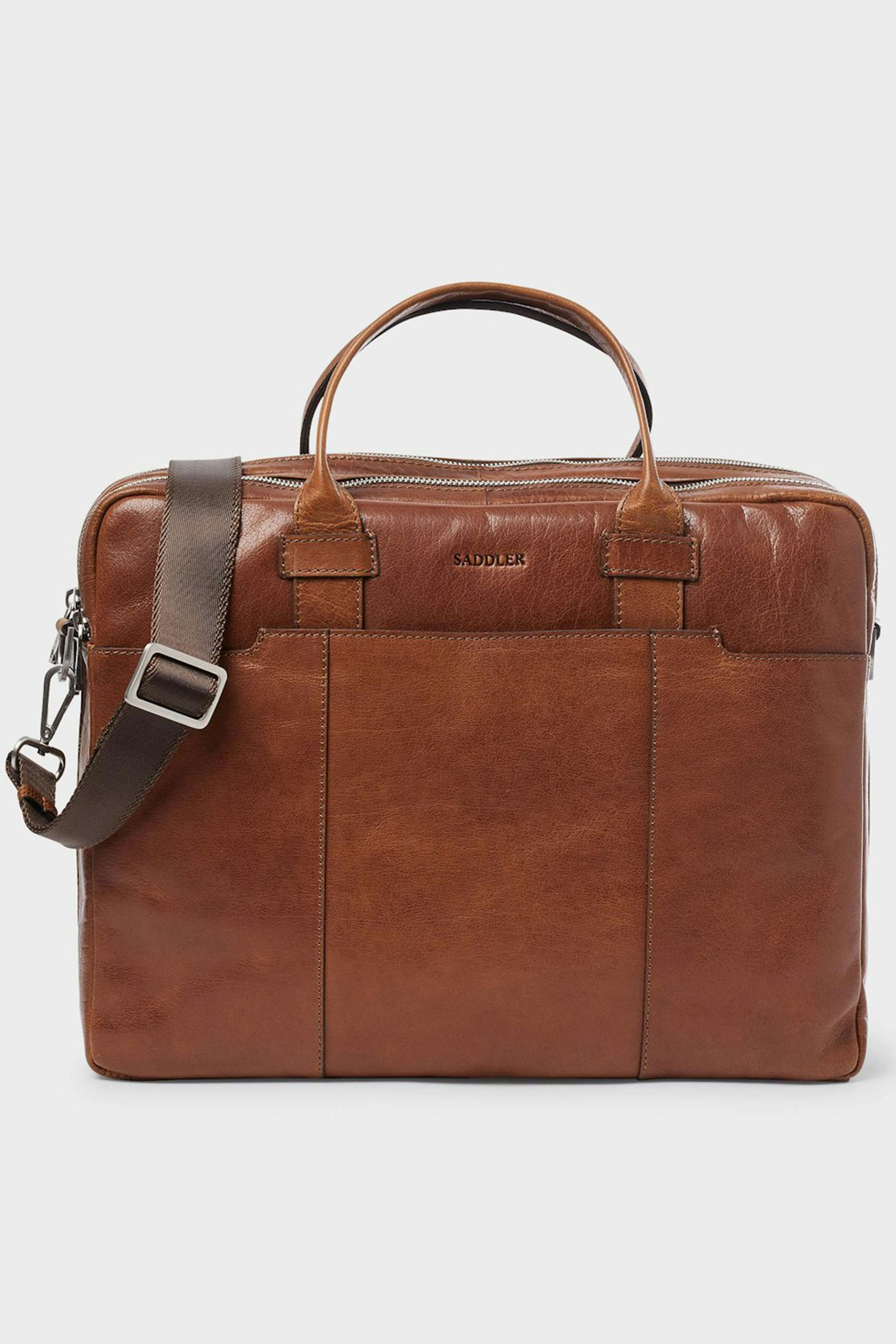 Stilig PC-veske fra Saddler I en delikat brunfarge. Vadstena er en romslig og funksjonell PC-veske med to rom, hvorav det ene har et polstret PC-rom som rommer en datamaskin opp til 15″. Rommet lukkes med toveis metallglidelås som strekker seg helt ned til bunnen av vesken. I de to andre rommene er det god plass til tilbehør som notatblokk, ladere og andre nyttige ting man skulle ha med seg. Den perfekte vesken til jobb eller andre ærender hvor man er på farten.