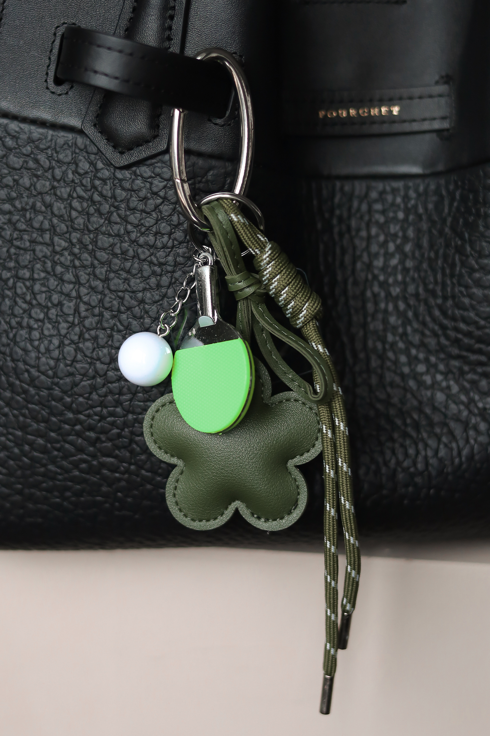 Trendy veskepynt med ulike motiver i grønt. Denne kommer fire ulike motiver med tennis som hovedtema. Du kan enkelt fjerne og legge til motiver om ønskelig og er like fin å ha på vesken som mobilpynt. Pynt opp vesken din med det lille ekstra!