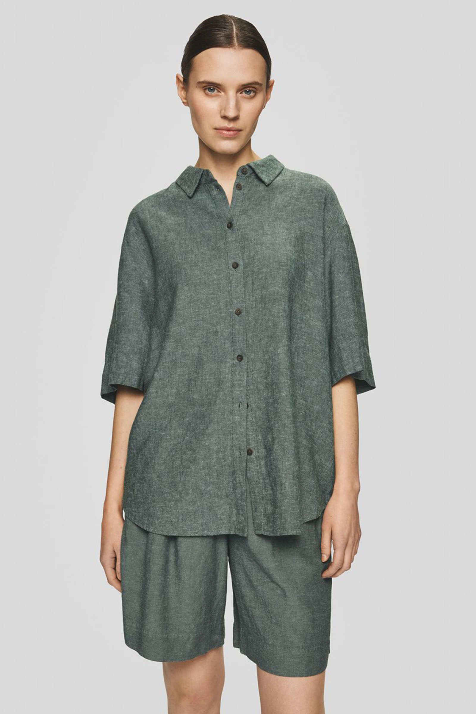 Viana Ginia HW Shorts fra MSCH Copenhagen i en trendy grønn farge. Den har høy midje og en løs, komfortabel passform som gjør den perfekt for varme dager. Laget i en lett linblanding med elastisk linning bak, knapp- og glidelåslukking, samt diskrete baklommer og sidelommer. Styles fint med en matchende topp eller en enkel singlet for en avslappet sommerstil.